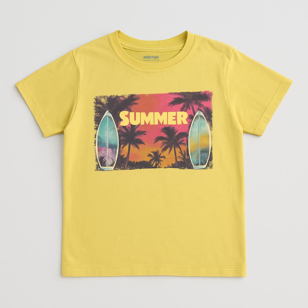 Questa simpatica t-shirt gialla è perfetta per le piccole stelle dell'estate! Con la sua vivace stampa che celebra l'energia dell'estate, presenta una scritta "SUMMER" e due surfisti che evocano avventure sulla spiaggia. Realizzata in morbido cotone, è comoda e leggera, ideale per le giornate soleggiate e per giochi all'aperto. Anche se è un capo usato, si presenta in buone condizioni e porterà un sorriso nel guardaroba dei tuoi bimbi. Perfetta per piccole anime avventurose che amano divertirsi con stile!