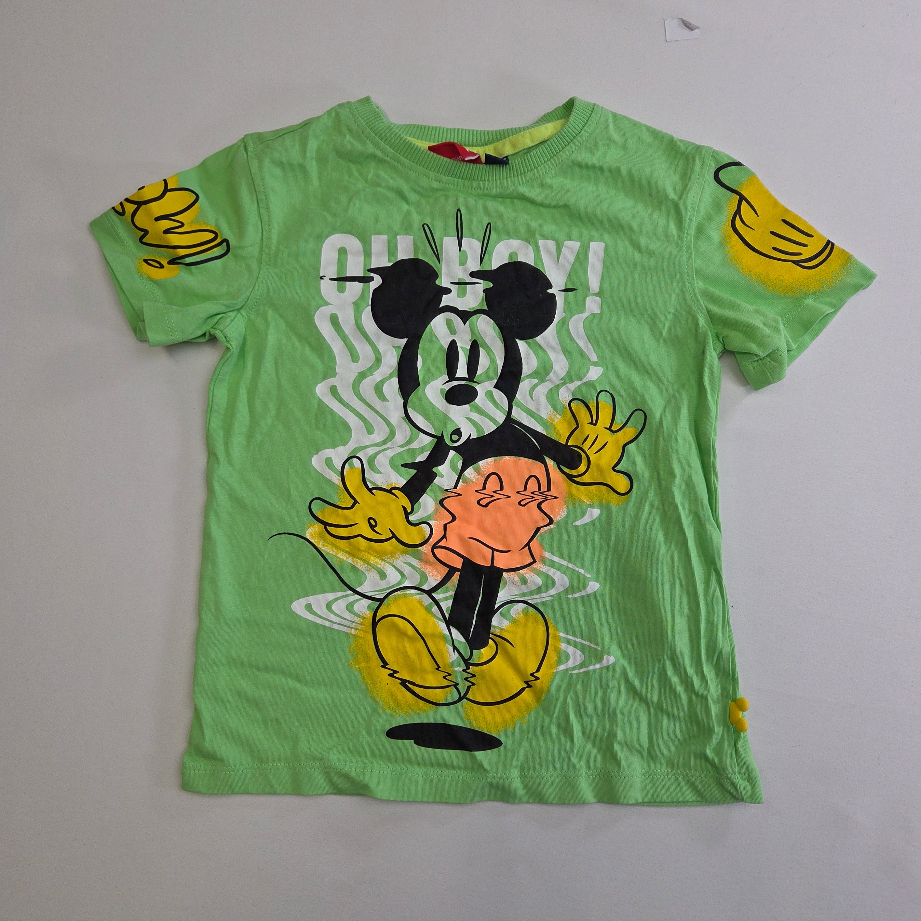 Questa divertente t-shirt di Mickey Mouse sarà la scelta perfetta per i piccoli fan del famoso topo! Realizzata in morbido cotone, presenta un vivace colore verde chiaro che cattura subito l'attenzione. Sul fronte, il fantastico grafismo di Mickey con le sue amate mani gialle dona un tocco giocoso e simpatico.