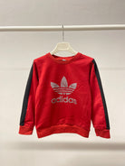 Questo adorabile maglione Adidas rosso è perfetto per i piccoli sportivi! Realizzato in morbido cotone, offre comfort e calore per le avventure quotidiane. La vivace tonalità rossa è accentuata da maniche nere, creando un look alla moda e dinamico. Sul fronte, si distingue il logo Adidas in glitter argento, aggiungendo un tocco scintillante. Il taglio pratico e le maniche a spalla rendono questo maglione facile da indossare e perfetto per qualsiasi attività, dal gioco all'aperto alle giornate di scuola. Anche se è un capo usato, si presenta in ottime condizioni, pronto per accompagnare il tuo bambino in ogni esplorazione! Un must-have nel guardaroba di ogni giovane trendsetter.