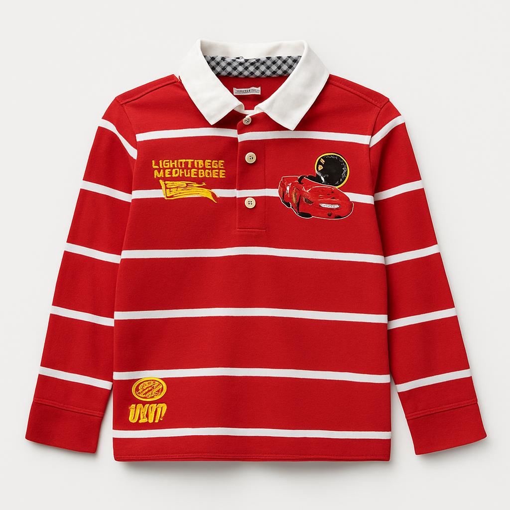 Questo fantastico polo a righe rosse è perfetto per i piccoli fan delle corse! Con un colletto bianco elegante e dettagli ricamati che richiamano il mondo di Cars, il tuo bambino si sentirà un vero pilota. Le righe tondeggianti e colorate conferiscono un tocco vivace e allegro, ideale per le avventure all'aperto o una giornata al parco. Nonostante sia un capo usato, è in ottime condizioni e pronto a rendere ogni outfit divertente e dinamico. Un must-have per i piccoli amanti della velocità!