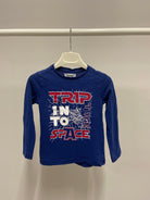 Scopri l'emozione di esplorare lo spazio con questa fantastica maglietta blu di marca Benetton! Realizzata in cotone morbido e traspirante, presenta un vivace design con la scritta "TRIP INTO SPACE" in colori brillanti che catturerà l’attenzione di ogni piccolo astronauta. Le maniche lunghe la rendono perfetta per le giornate fresche, garantendo comfort e libertà di movimento. Questo capo usato è in buone condizioni e pronto per accompagnare tantissime avventure galattiche! Un’aggiunta divertente e stilosa al guardaroba di ogni bambino!