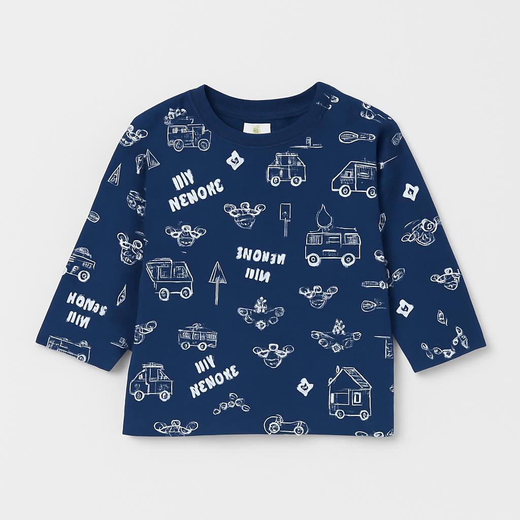 Questo adorabile maglione a maniche lunghe è perfetto per i piccoli amanti dei supereroi! Realizzato in un morbido tessuto blu navy, presenta una stampa giocosa di macchinine e giocatoli che faranno battere forte il cuore di ogni bambino. La scritta “My Heroes” aggiunge un tocco speciale e avventuroso.