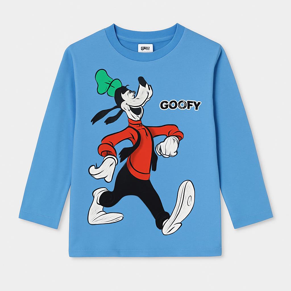 Questa fantastica maglietta a maniche lunghe è perfetta per i piccoli fan di Topolino! Realizzata in un morbido cotone azzurro, presenta un divertente design con il celebre Goofy che sorride e si muove con il suo inconfondibile stile. La vivace stampa è arricchita dal nome "GOOFY" in lettere grandi, che porterà un sorriso sul volto di ogni bambino. Il taglio comodo e leggero è ideale per le avventure quotidiane o per un look casual da indossare a scuola. Nonostante sia un pezzo usato, si trova in ottime condizioni e promette di fare felice ogni piccolo fan dei classici Disney!
