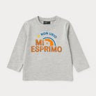 Questa fantastica maglietta a maniche lunghe è perfetta per i piccoli esploratori! Realizzata in morbido cotone grigio, offre comfort e calore. La scritta "MI ESPRIMO" in vivaci tonalità arancioni e azzurre aggiunge un tocco di creatività e felicità. Ideale per le giornate di gioco o le avventure in famiglia, questo capo usato è in ottime condizioni e pronto per essere indossato con stile. Un must-have per ogni piccolo fashionista che ama esprimere la propria personalità!