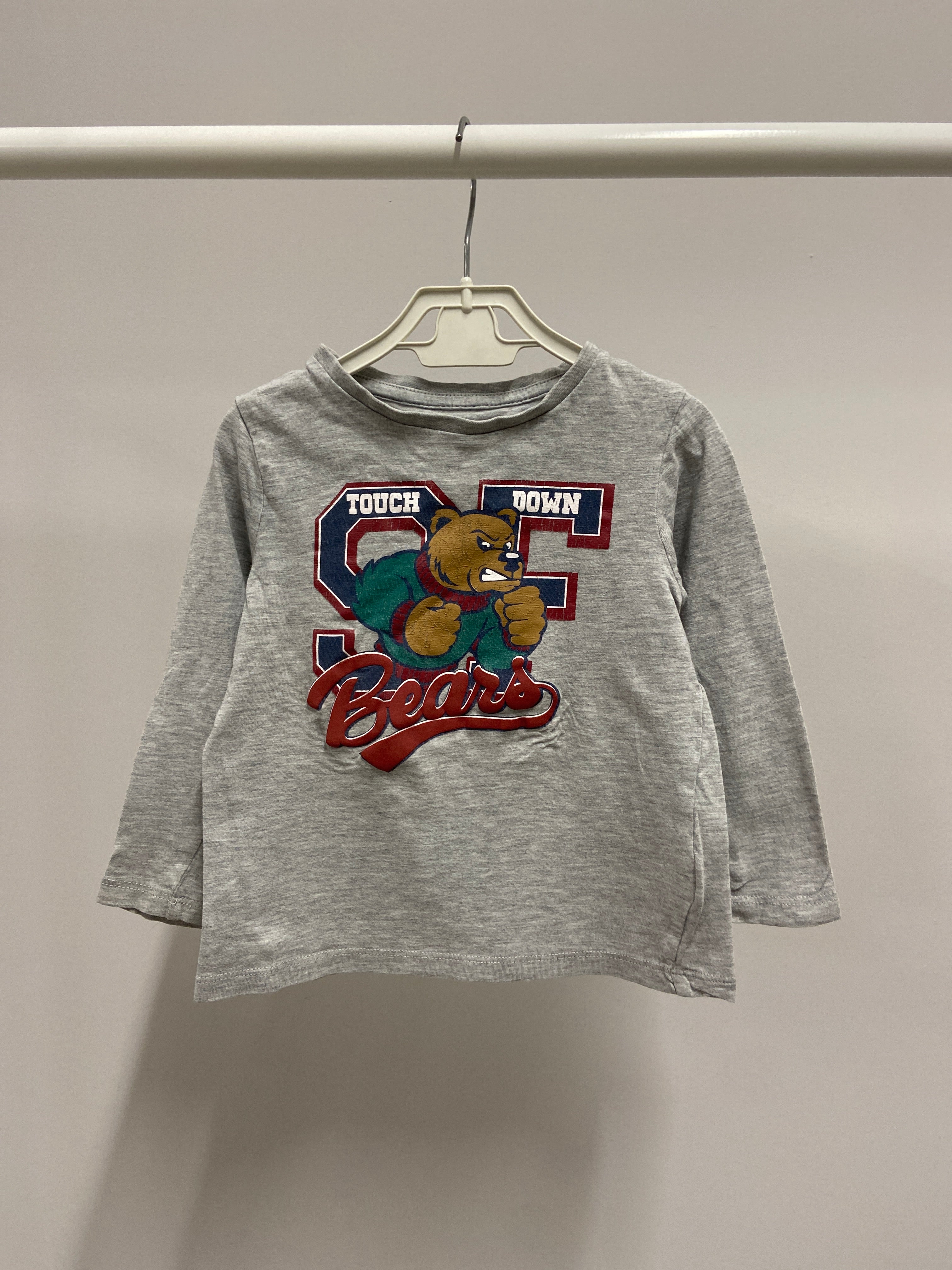 Questa adorabile maglietta a maniche lunghe è perfetta per i piccoli tifosi! Realizzata in un morbido cotone grigio, presenta un vivace design con il simpatico ornamento di un orso e la scritta "Touch Down Bears". Il taglio comodo e il tessuto leggero la rendono ideale per le avventure quotidiane o una serata di gioco. Anche se è un capo usato, si presenta in ottime condizioni, pronto per essere indossato da un piccolo campione! Un must-have per i loro outfit casual e sportivi!