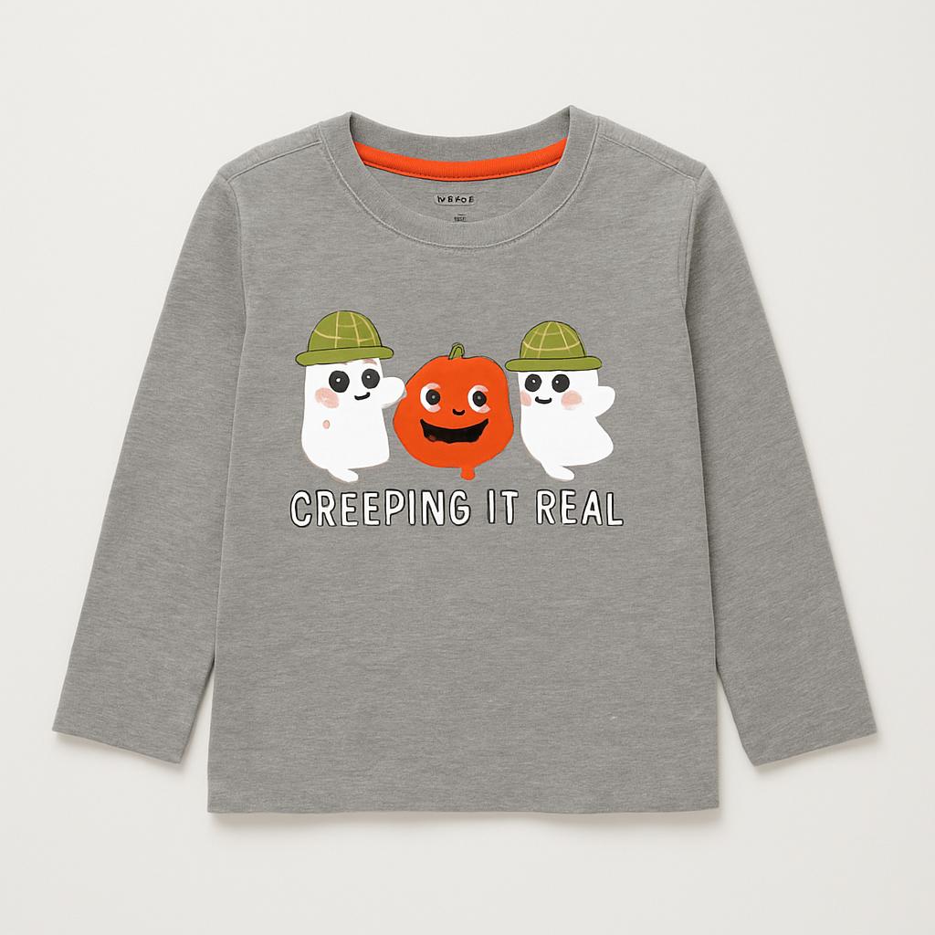 Fai divertire il tuo piccolo con questa adorabile maglietta grigia, perfetta per la stagione autunnale! Con un vivace design che presenta tre fantasmini e una simpatica zucca, è ideale per Halloween. La scritta “Creeping It Real” aggiunge un tocco ironico e festoso. Realizzata in morbido cotone, la maglietta offre comfort e libertà di movimento per giochi e avventure. Anche se è un capo usato, si trova in ottime condizioni, pronta per portare un sorriso e tanto divertimento nel guardaroba del tuo bambino!