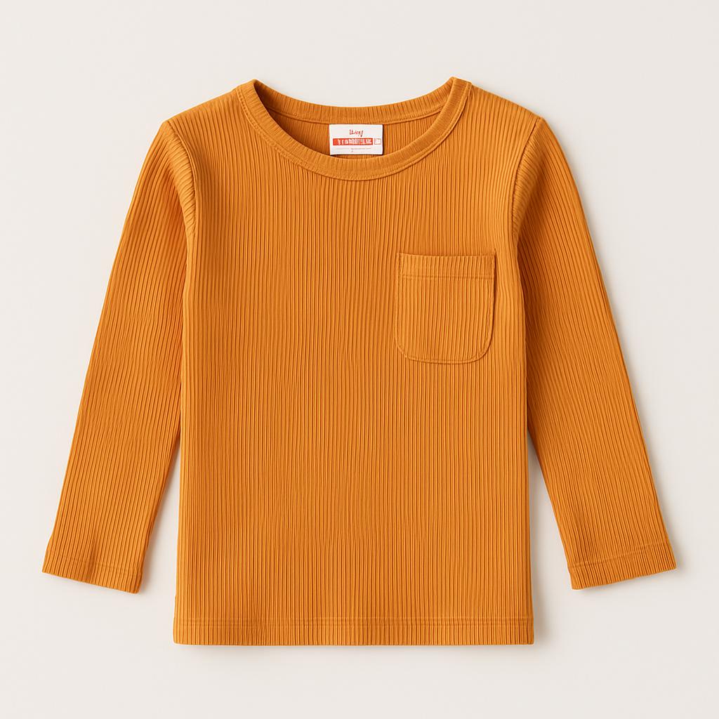 Questa deliziosa maglietta a maniche lunghe in un caldo tono arancione è perfetta per le giornate autunnali! Realizzata in morbido tessuto a costine, offre comfort e stile in ogni situazione. Il piccolo taschino sul petto aggiunge un tocco di originalità, rendendo questo capo ideale per i piccoli esploratori. Nonostante sia usata, si presenta in ottime condizioni, pronta per nuove avventure! Un must-have versatile che si abbina facilmente a jeans o pantaloni.