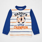 Questo adorabile e sportivo maglioncino è perfetto per i piccoli campioni! Realizzato in morbido cotone, presenta una base bianca con strisce blu e arancioni. La scritta “DADDY'S N°1 LITTLE CHAMPION” al centro, accompagnata da un pallone da calcio, rende questo capo divertente e accattivante. Le maniche lunghe proteggono dai venti freschi, mentre il taglio comodo permette libertà di movimento per tutte le avventure quotidiane. Anche se è un capo usato, è in ottime condizioni e pronto per essere indossato da un giovane talento!
