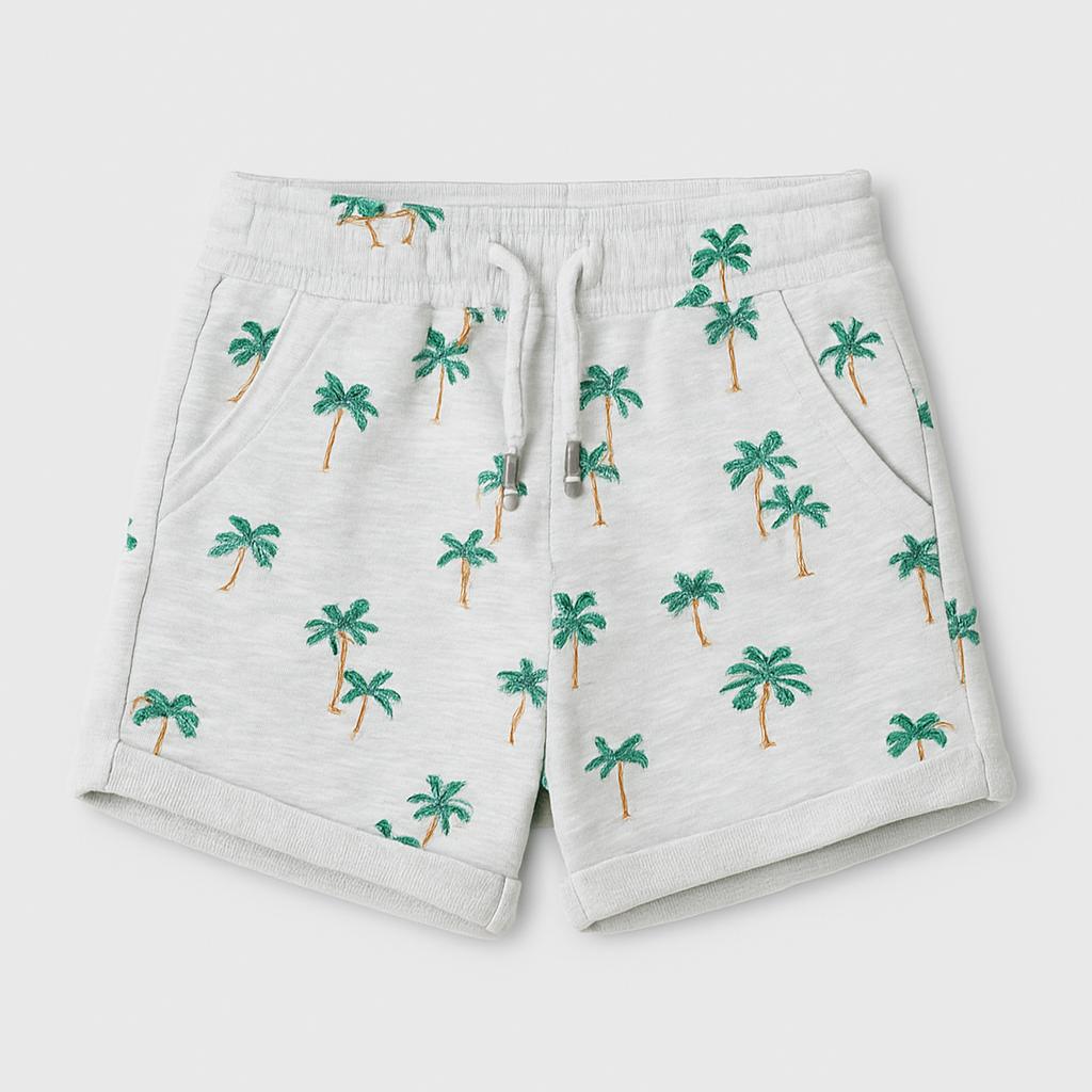 Questi adorabili pantaloncini in cotone sono perfetti per le giornate estive dei tuoi bambini! Con un delicato motivo di palme che evoca vacanze e avventure all'aria aperta, questi shorts offrono comfort e stile. Il tessuto morbido e leggero consente una libertà di movimento ideale per correre e giocare, mentre la vita elastica con lacci assicura una vestibilità perfetta. Anche se usati, si presentano in ottime condizioni, pronti per essere indossati e amati da un piccolo esploratore! Un capo essenziale per un look casual e fresco!