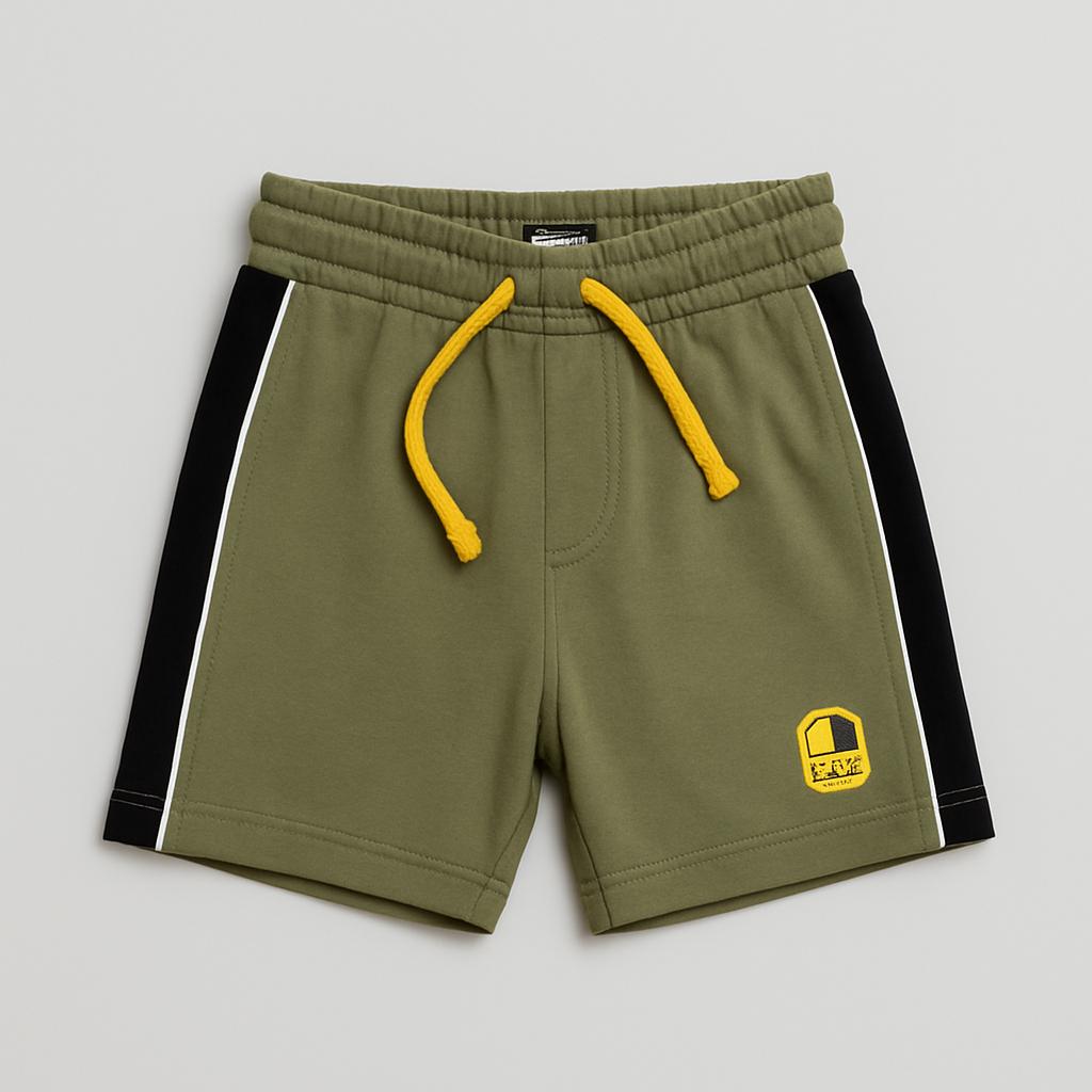 Questi adorabili pantaloni corti da bambino, realizzati in un morbido cotone, sono perfetti per le giornate di sole! Di colore verde oliva con dettagli in nero e un cinturino giallo fluorescenti, aggiungono un tocco vivace al look. Il logo "FLUN" sul davanti conferisce un effetto trendy e sportivo. Con un comodo elastico in vita e pratiche tasche, questi shorts sono ideali per giochi all'aperto e avventure estive. Nonostante siano usati, si presentano in ottime condizioni, pronti a dare vita a un nuovo capitolo di avventure al tuo piccolo!