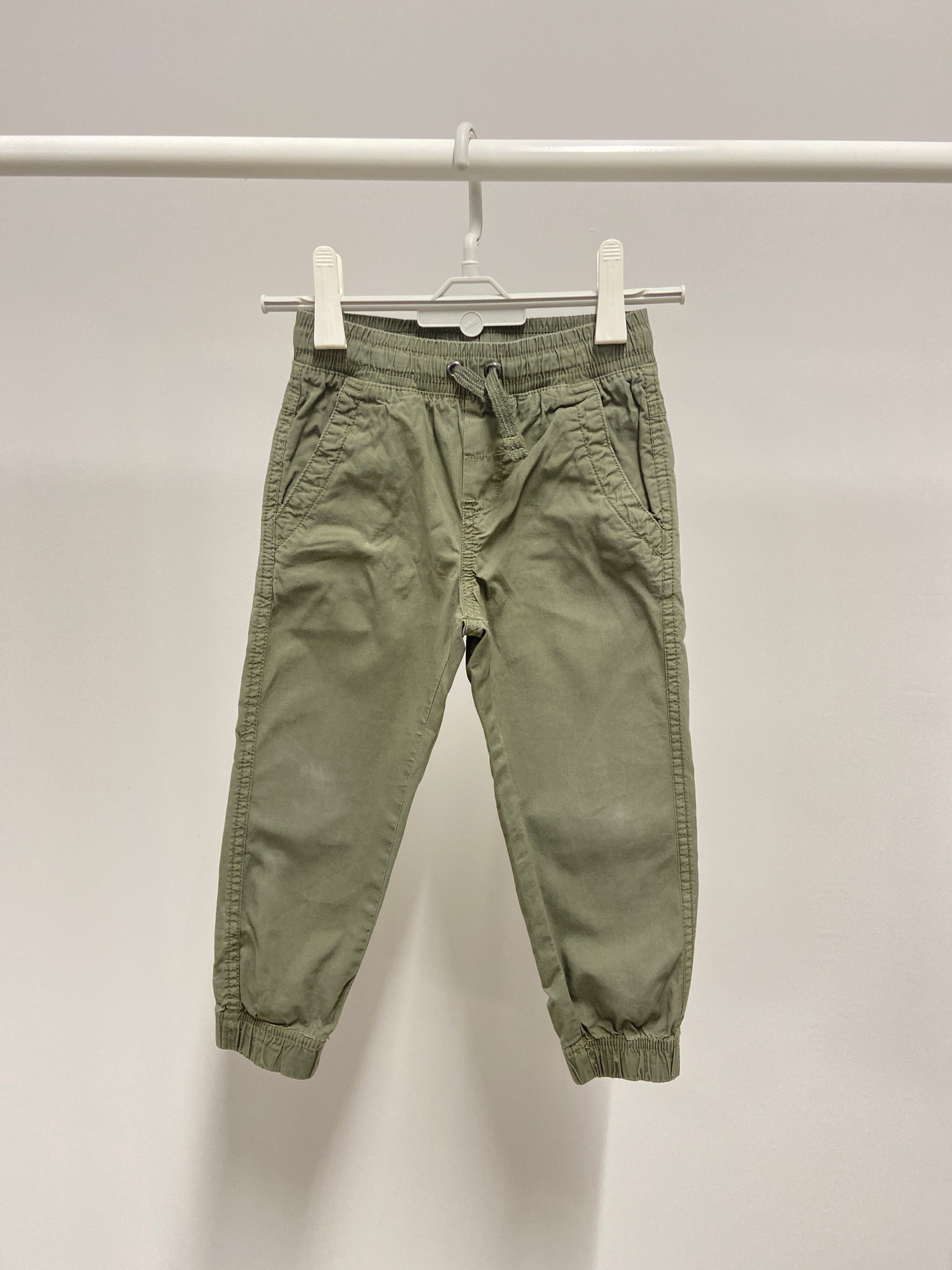 Questi adorabili pantaloni lunghi in verde oliva sono un'ottima aggiunta al guardaroba del tuo piccolo! Realizzati in un tessuto morbido e leggero, offrono comfort e libertà di movimento per ogni avventura. Il design con cintura elastica assicura una vestibilità perfetta, mentre le rimanenti cerniere alle caviglie aggiungono un tocco trendy. Ideali per giornate di gioco o passeggiate nel parco, questi pantaloni usati sono in ottime condizioni e pronti per essere indossati da un piccolo esploratore!