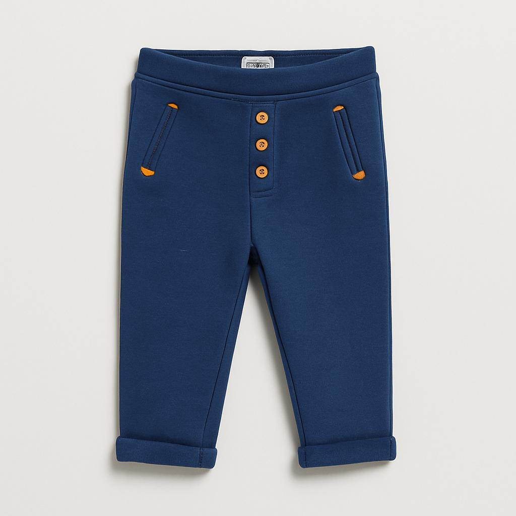 Questi adorabili pantaloni blu di marca non possono mancare nel guardaroba del tuo bambino! Realizzati in un caldo e morbido cotone, offrono massimo comfort per ogni avventura. Le due tasche anteriori, con dettagli in arancione, aggiungono un tocco creativo e pratico, mentre i bottoni decorativi sul davanti donano un pizzico di eleganza. Il taglio elegante e il girovita regolabile garantiscono una vestibilità perfetta. Ideali per le giornate fresche o per giochi indoor, questi pantaloni usati sono in ottime condizioni e pronti a dare un tocco di stile al look del tuo piccolo!