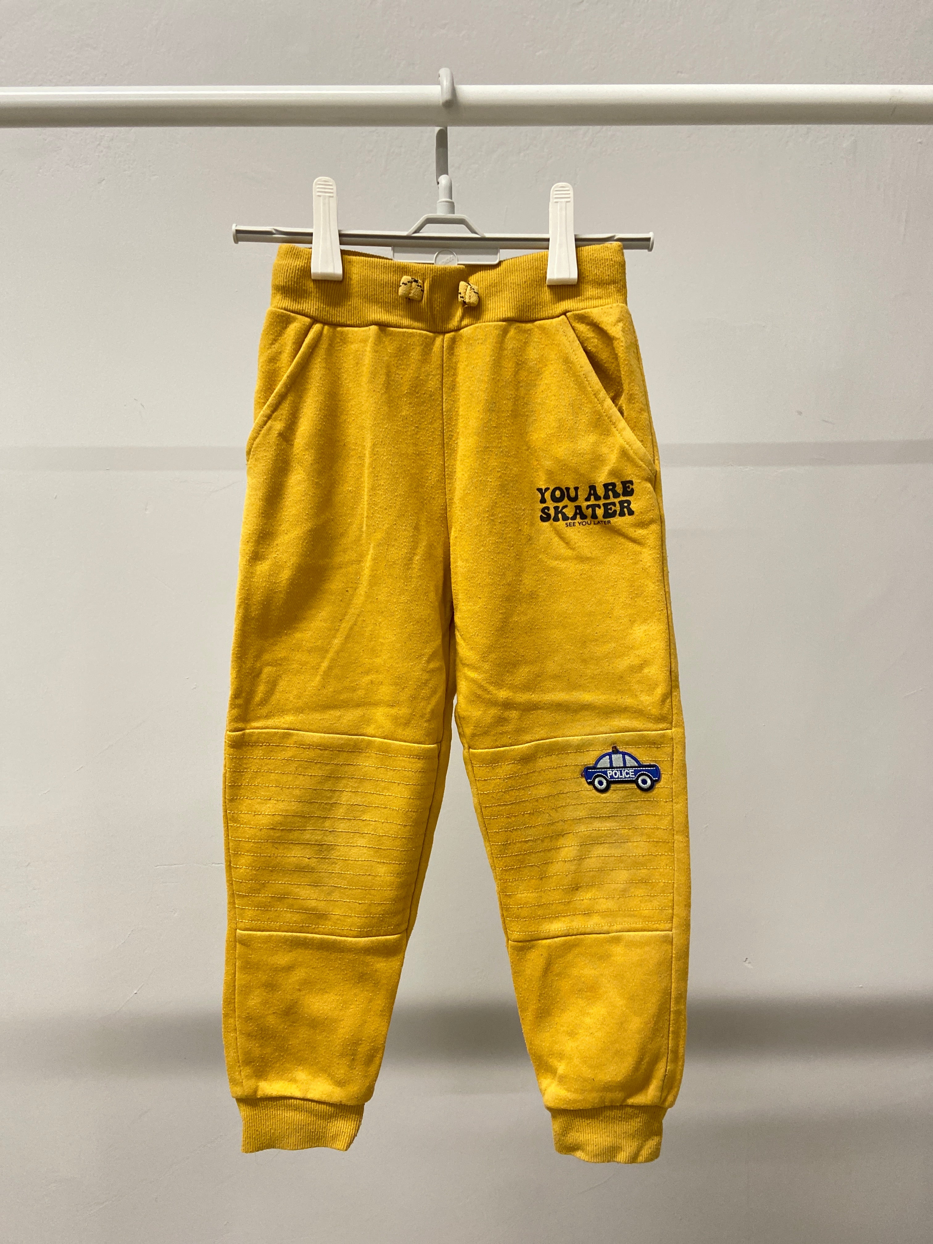 Questi fantastici pantaloni di tuta gialli faranno brillare il guardaroba del tuo piccolo atleta! Realizzati in un morbido cotone, garantiscono il massimo del comfort e della libertà di movimento durante le avventure quotidiane. Il divertente slogan “YOU ARE SKATER” sul fronte e l’adorabile topolino ricamato sulla gamba, donano un tocco di originalità e stile urbano.