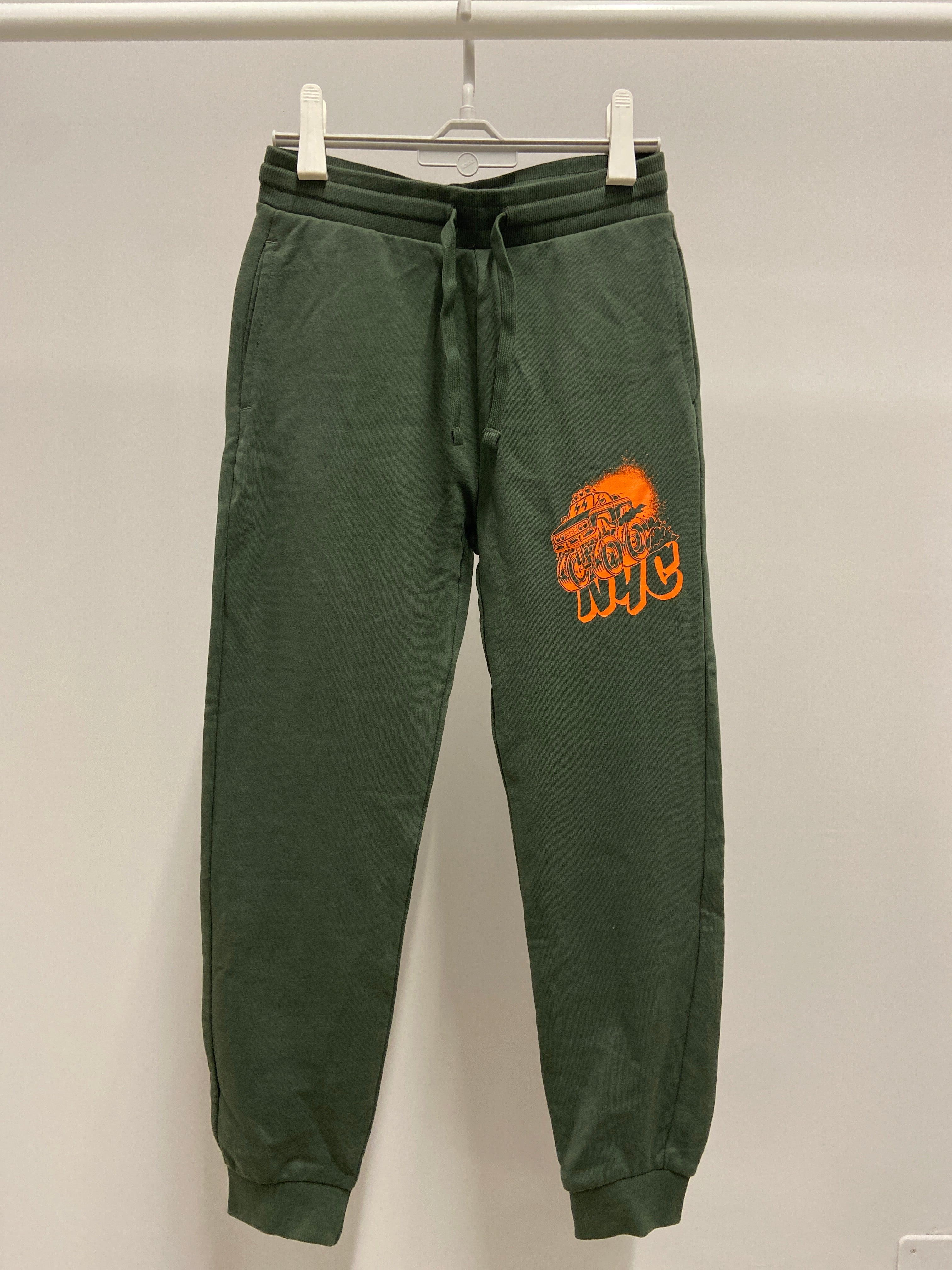 Questi comodi pantaloni da jogging in morbido cotone sono perfetti per il tuo piccolo atleta! Di un elegante verde scuro, presentano un vivace logo arancione "NYC" che aggiunge un tocco moderno e urbano. La vita elastica e il taglio a gamba affusolata garantiscono una vestibilità pratica per ogni avventura, mentre i polsini alla caviglia consentono un look sempre in ordine. Ideali per le giornate di gioco all'aperto o per un relax a casa, sono un must-have nel guardaroba di ogni bambino! Nonostante siano usati, si presentano in ottime condizioni, pronte per nuove avventure!