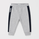 Questi simpatici pantaloni della tuta sono l'alleato perfetto per il comfort e il gioco! Realizzati in morbido cotone, presentano una tonalità grigia melange, arricchita da bande laterali blu scuro che donano un tocco sporty. La vita elasticizzata assicura una vestibilità comoda, consentendo libertà di movimento durante le avventure quotidiane. Nonostante siano usati, sono in ottime condizioni, ideali per i piccolini che amano tornare a casa con un sorriso e un look alla moda! Perfetti per le lunghe giornate di gioco e relax!