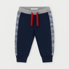 Questi fantastici pantaloni jogging blu scuro sono perfetti per i piccoli avventurieri! Realizzati in un morbido cotone, offrono un comfort eccezionale per ogni attività, dal gioco al relax. I dettagli in grigio sulla parte laterale e la coulisse rossa aggiungono un tocco di stile dinamico e sportivo. Il taglio aderente con fondo elasticizzato garantisce una vestibilità ottimale, permettendo libertà nei movimenti. Nonostante siano usati, si presentano in ottime condizioni. Un capo versatile per un look casual e trendy!