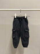 Questi comodi pantaloni jogger in stile urbano sono l'ideale per i piccoli avventurieri! Realizzati in morbido cotone, presentano un elegante colore grigio scuro, perfetto per abbinarsi a qualsiasi outfit. Le pratiche tasche laterali aggiungono un tocco funzionale e trendy, perfette per custodire piccoli tesori e segreti. La vita elasticizzata garantisce comfort e facilità di movimento, rendendoli perfetti per le giornate di gioco all'aperto o per momenti di relax a casa. Nonostante siano usati, si presentano in ottime condizioni, pronti a diventare i nuovi compagni di avventure del tuo bambino!