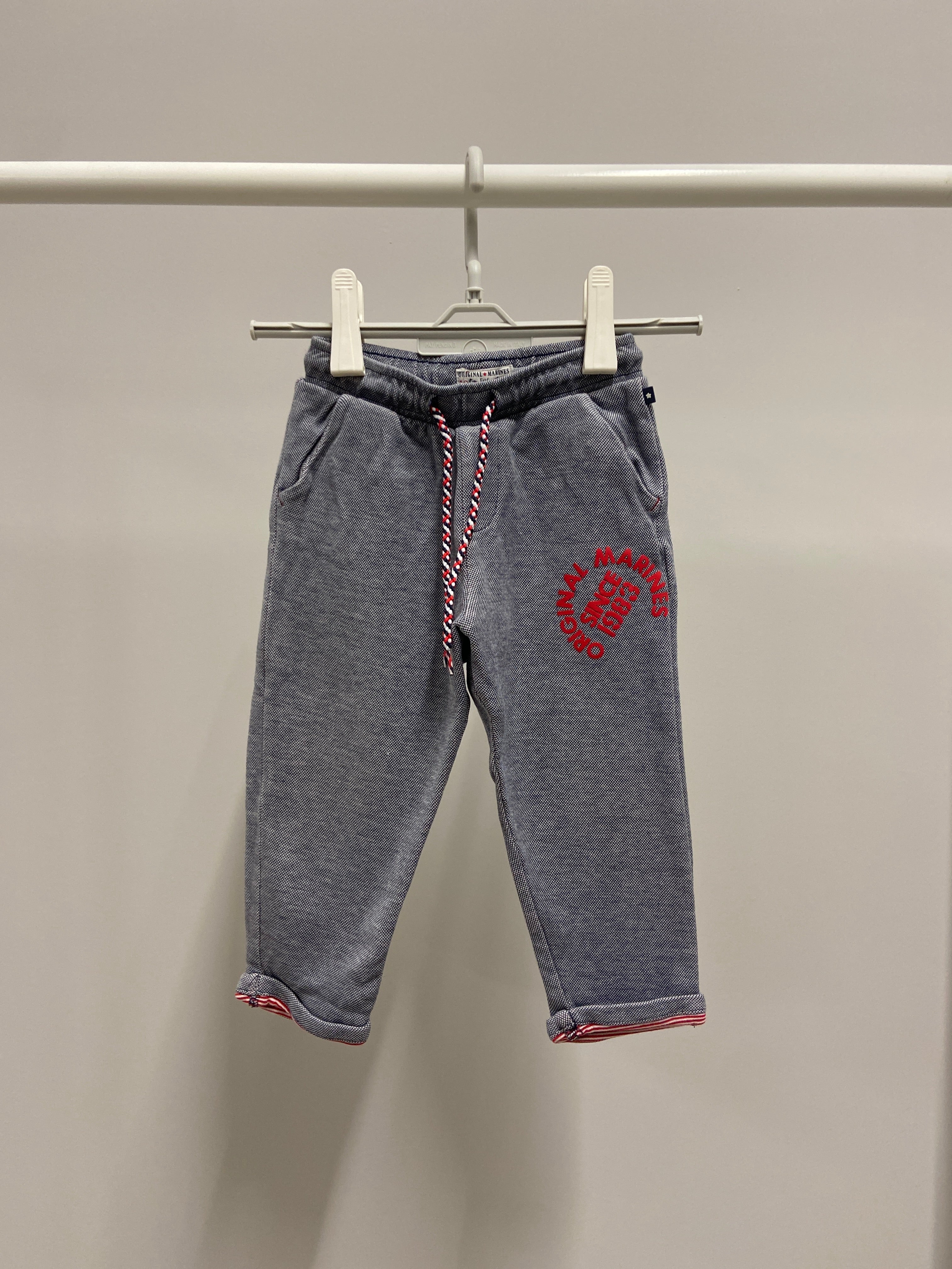 Questi adorabili pantaloni Grigi di marca GAP sono perfetti per le piccole pesti! Realizzati in morbido materiale felpato, offrono comfort e calore per affrontare ogni avventura. La vita elasticizzata con cordoncino permette una vestibilità regolabile e confortevole. Il dettaglio della scritta rossa sul davanti e il bordo a righe rosse e bianche donano un tocco di vivacità e stile. Perfetti per giocare all'aperto o per una giornata di relax a casa, sono un capo usato ma in ottime condizioni, pronto a diventare il favorito del guardaroba!