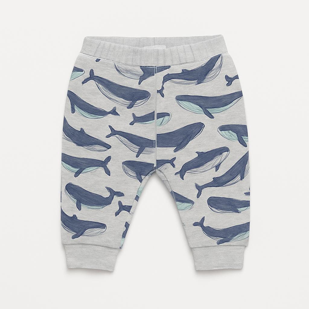 Questi pantaloni morbidi e leggeri sono perfetti per i piccoli esploratori! Realizzati in cotone grigio, sono decorati con un simpatico motivo di balene che portano un tocco marino al guardaroba. L'elastico in vita garantisce una vestibilità comoda, ideale per correre, giocare e divertirsi. Con tasche pratiche per raccogliere i tesori durante le avventure quotidiane, questi pantaloni sono un ottimo compagno per ogni giornata. Nonostante siano usati, si presentano in buone condizioni, pronti per essere indossati e sfoggiati con stile!