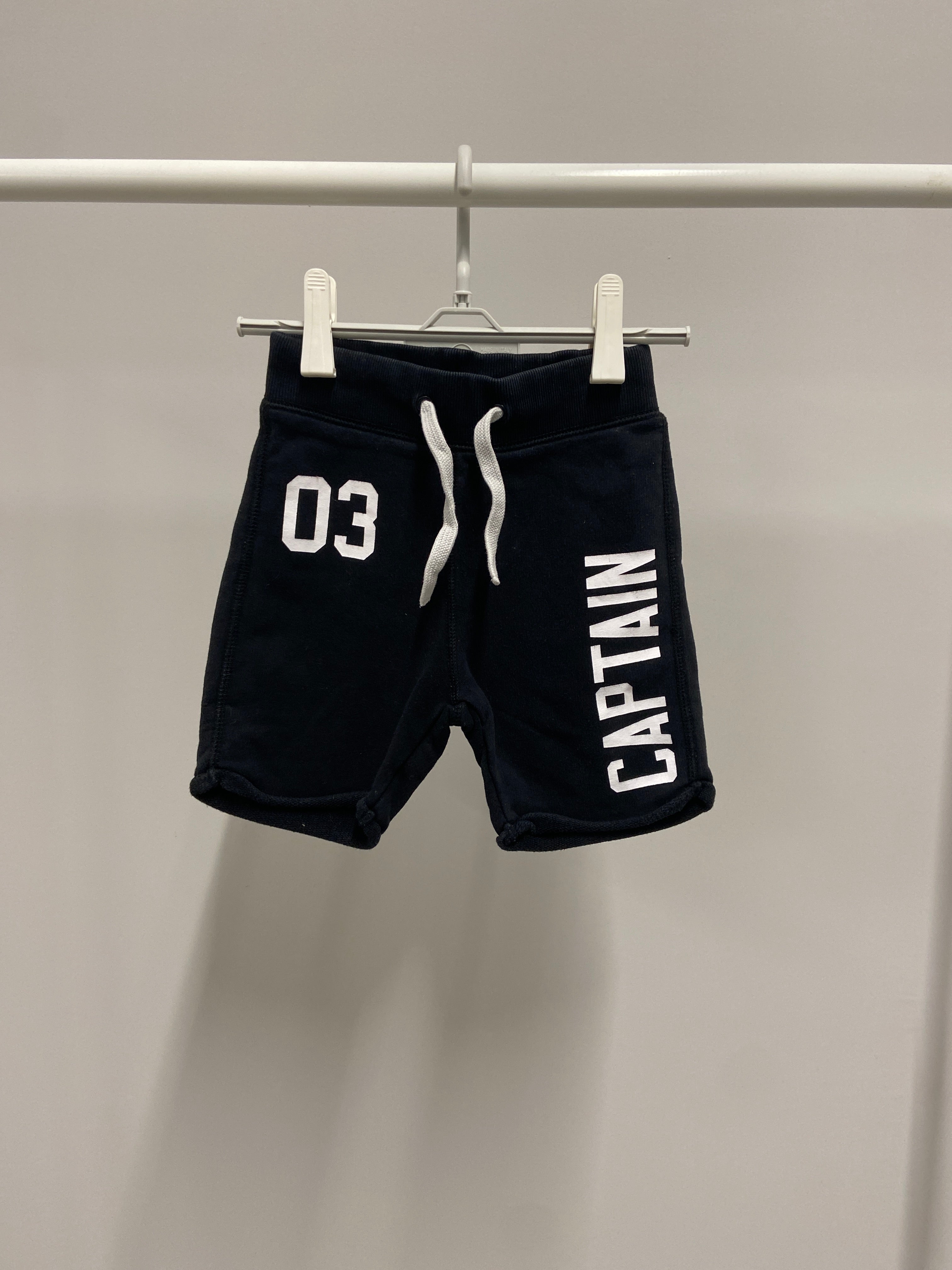 Questi adorabili pantaloni corti sono perfetti per il tuo piccolo avventuriero! Realizzati in un morbido tessuto blu navy, presentano la scritta "CAPTAIN" in un vivace bianco, pronta ad ispirare storie di pirati e avventure emozionanti. Il numero "03" sul lato aggiunge un tocco sportivo e giovanile, mentre la vita elastica con cordino assicura una vestibilità comoda e regolabile. Ideali per giochi all'aperto o rilassati pomeriggi estivi, questi pantaloni corti usati sono in ottime condizioni e faranno brillare il guardaroba del tuo bambino. Un capo indispensabile per i piccoli navigatori!