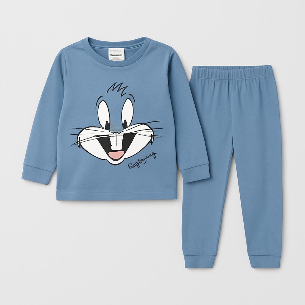 Questo adorabile completo di pigiama è perfetto per le notti dei tuoi piccoli! Realizzato in morbido cotone azzurro, presenta una maglietta con un simpatico sorriso di Bugs Bunny che farà divertire ogni bambino. I pantaloni abbinati, con un taglio comodo e elastico in vita, garantiscono libertà di movimento durante il sonno o i momenti di gioco. Nonostante sia un capo usato, è in ottime condizioni e pronto per regalare notti piene di sogni e avventure! Un must per ogni piccolo fan dei Looney Tunes!
