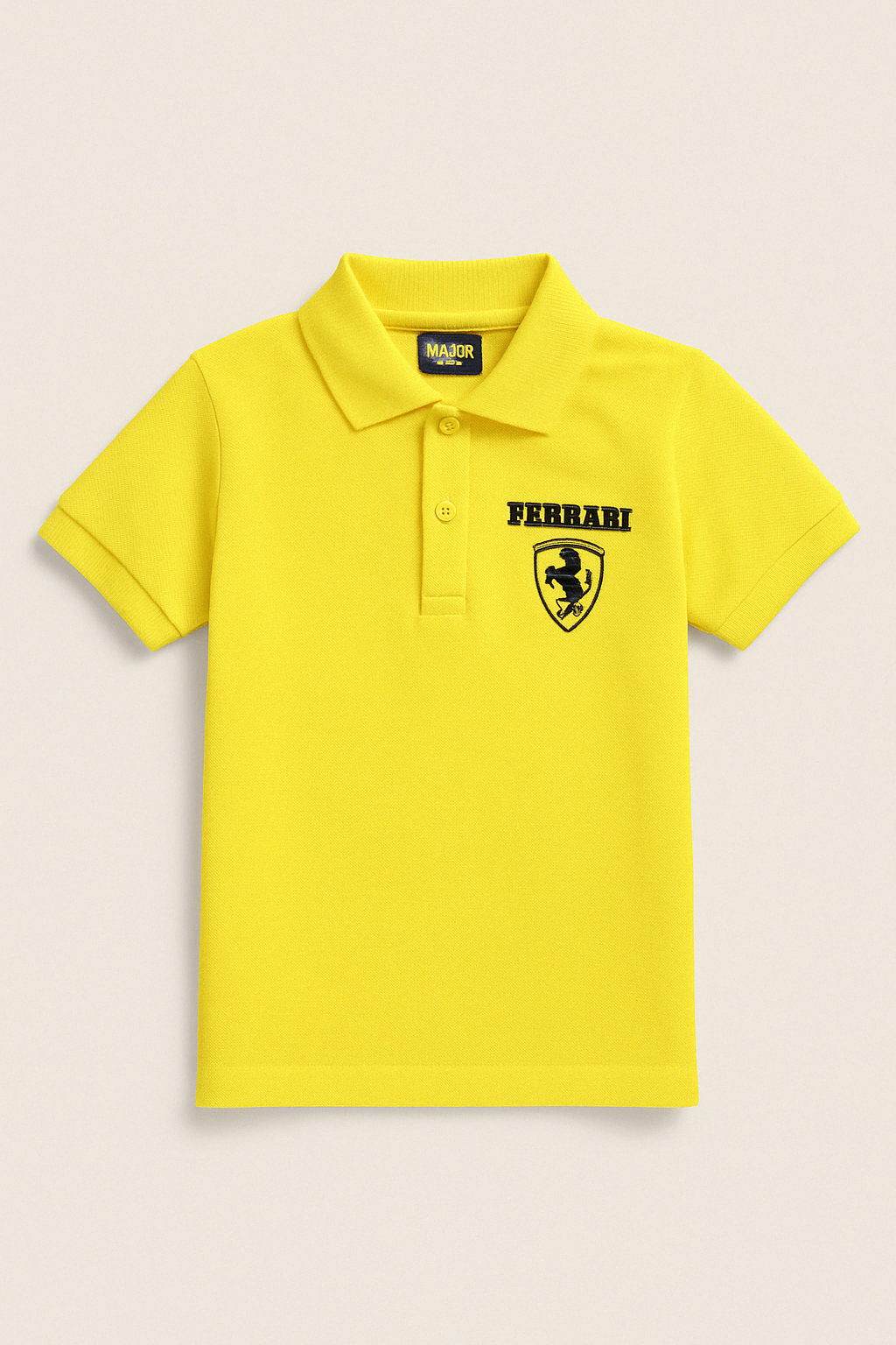Dai un tocco di freschezza al guardaroba del tuo bambino con questa vivace polo gialla di Ferrari! Realizzata in cotone morbido, è comoda e traspirante, perfetta per le avventure estive. Sul petto, il logo iconico della Ferrari apporta un tocco sportivo e stiloso, che farà brillare ogni outfit. Le maniche corte e il colletto classico la rendono versatile per ogni occasione, sia per una giornata al parco che per una festa tra amici. Nonostante sia un capo usato, mantiene ottime condizioni e un fascino irresistibile!
