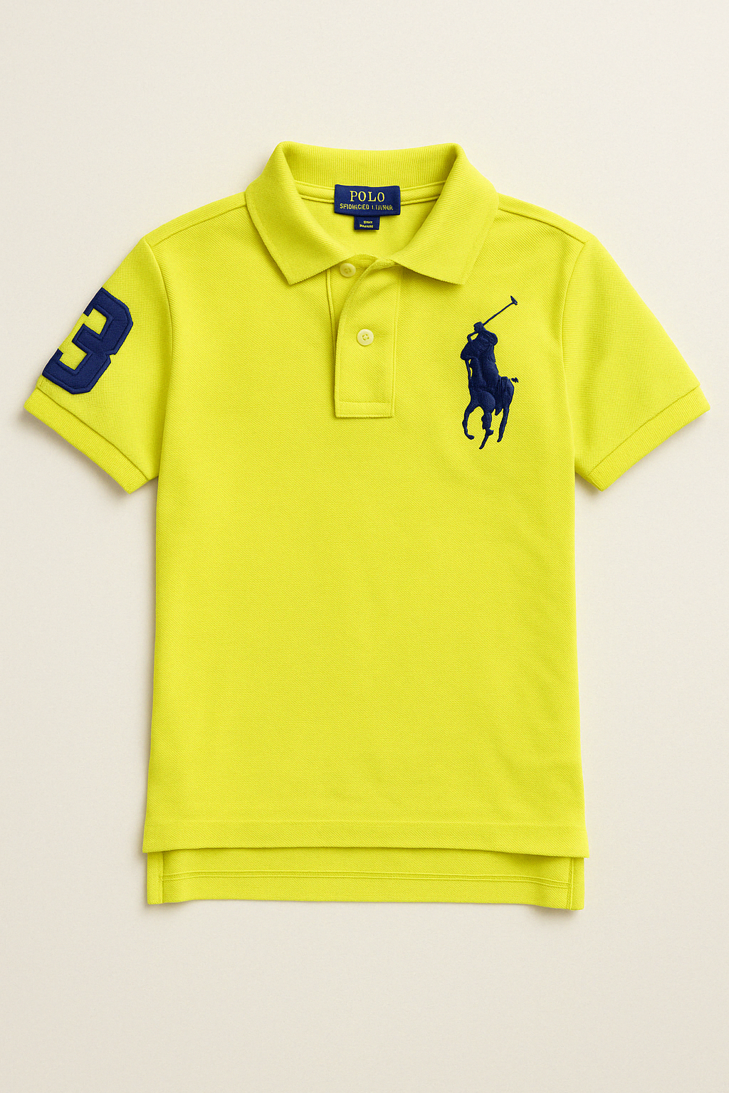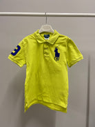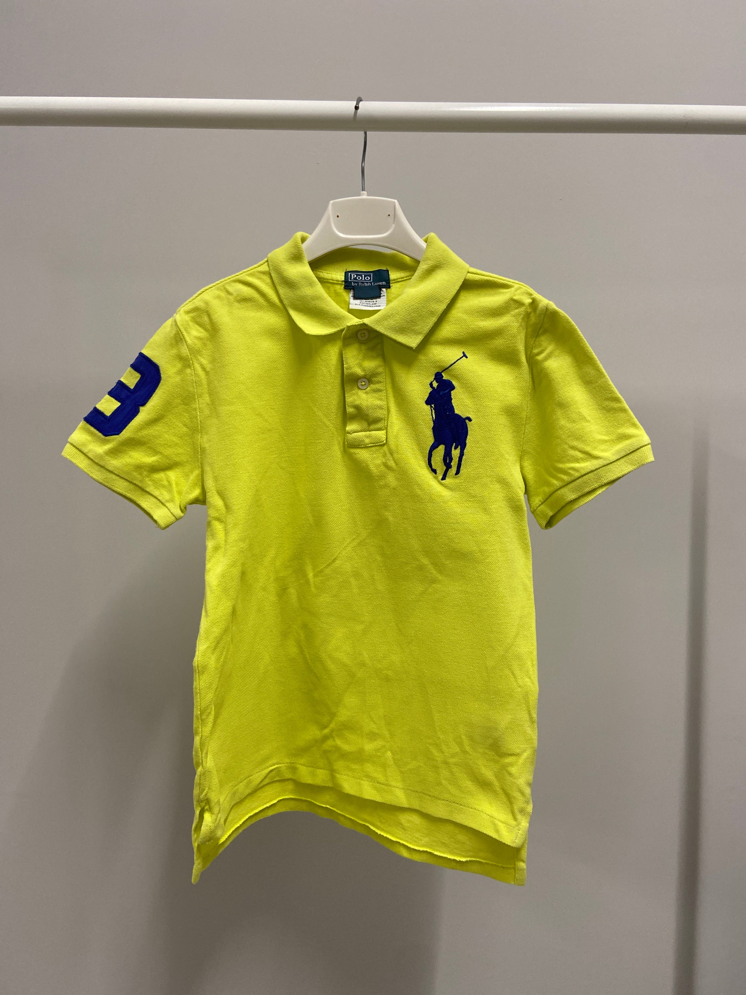 Questa vivace polo di Ralph Lauren è perfetta per i piccoli trendsetter! Realizzata in un fresco cotone giallo fluo, porta un tocco di energia e gioia al guardaroba. La caratteristica emblematicità del cavallo logo rende il capo davvero unico, mentre il numero 3 sulla manica sinistra aggiunge un pizzico di sportività. Con il suo taglio comodissimo, è ideale per le avventure quotidiane o le occasioni speciali. Nonostante sia un capo usato, si presenta in ottime condizioni, pronto a dare stile e comfort a ogni piccolo esploratore!