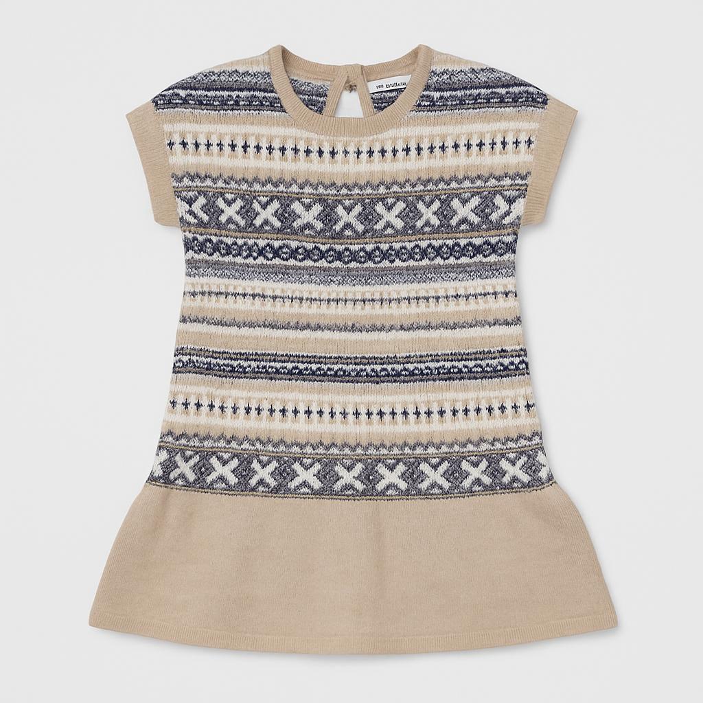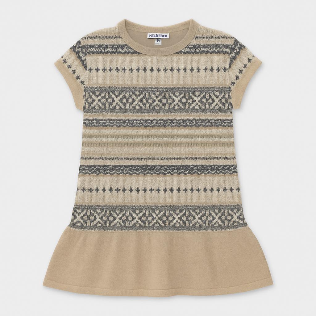 Questo adorabile vestito in maglia è perfetto per le piccole sognatrici! Con un design a righe che mescola tonalità di beige, grigio e bianco, regala un aspetto caldo e accogliente. Il colletto con apertura sul retro aggiunge un tocco di eleganza, mentre il taglio a campana offre ampiezza e comodità per muoversi liberamente. Ideale per giornate speciali o momenti di gioco, questo pezzo usato è in buone condizioni e pronto per essere indossato da una piccola trendsetter! Non lasciartelo sfuggire!