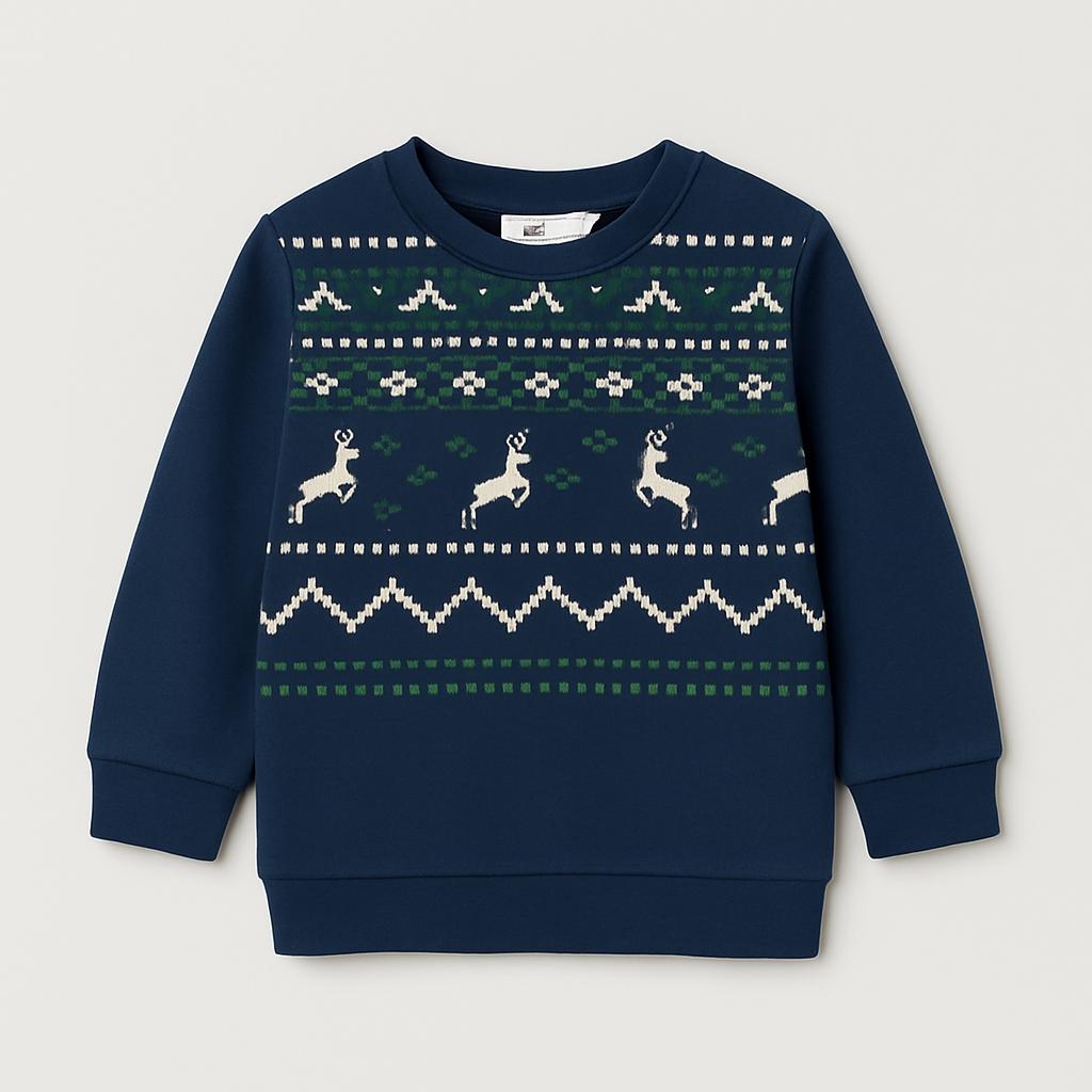 Questo adorabile maglione di colore blu scuro è perfetto per le fredde giornate invernali! Realizzato in un morbido tessuto, offre comfort e calore. La sua stampa festosa, con renne e un motivo a zigzag verde e bianco, porta un tocco di magia natalizia. Le maniche lunghe garantiscono praticità e protezione. Anche se è un capo usato, si presenta in ottime condizioni e farà sicuramente felice ogni bambino che ama avventurarsi nel mondo in modo stiloso. Non lasciarti scappare l'occasione di aggiungere un pizzico di allegria al guardaroba!