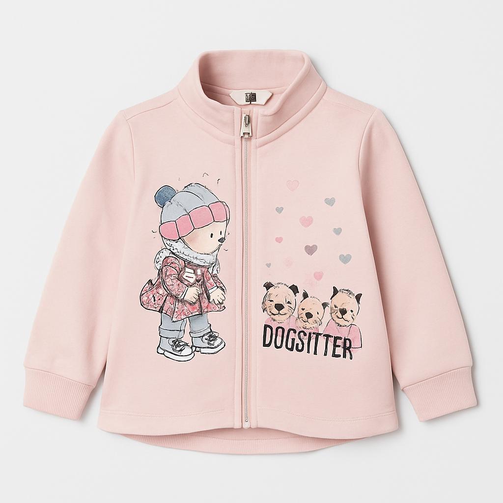 Questa adorabile felpa rosa è perfetta per le piccole amanti degli animali! Realizzata in morbido cotone, presenta una graziosa stampa di una bimba con cappello e delicati cuoricini. I tre adorabili gattini sul lato aggiungono un tocco giocoso e affettuoso. La zip frontale e i polsini elasticizzati garantiscono comfort e facilità di movimento, rendendola ideale per le avventure quotidiane. Nonostante sia un capo usato, si presenta in ottime condizioni e farà sentire la tua bimba alla moda e coccolata in ogni occasione!