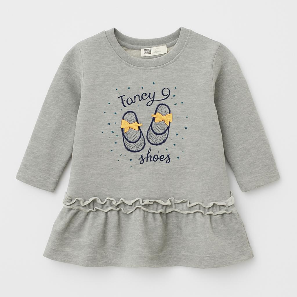 Questo adorabile vestito grigio è perfetto per le piccole fashioniste! Realizzato in morbido cotone, offre comfort e stile per ogni occasione. La fantasia con sandali brillanti e la scritta “Shiny Shoes” aggiunge un tocco di allegria e glamour. Con le maniche lunghe e il delizioso volant in fondo, è ideale per le giornate fresche e le occasioni speciali. Nonostante sia un capo usato, si presenta in ottime condizioni, pronto a far brillare il guardaroba della tua bimba!