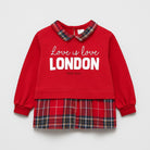 Questo adorabile maglione rosso con dettagli a quadri è perfetto per la stagione fredda! Con la scritta "Love is for London" in bianco, aggiunge un tocco di charme e personalità. La comoda manica lunga e il colletto rendono questo capo trendy e pratico per le avventure quotidiane. La parte inferiore in tartan aggiunge un pizzico di allegria, rendendolo ideale per un look casual ma stiloso. Usato ma in ottime condizioni, è un must per ogni piccola amante della moda!