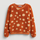 Questo adorabile maglione in morbido materiale fluffy è perfetto per le giornate più fredde! Il colore arancione vivace è adornato da simpatiche macchioline bianche, che rendono ogni look unico e divertente. Le maniche lunghe e il taglio comodo garantiscono calore e libertà di movimento, ideali per le avventure invernali. Nonostante sia un capo usato, si presenta in ottime condizioni e porterà un sorriso sul volto della tua piccola. Un must-have per ogni guardaroba che ama stilare e coccolarsi!