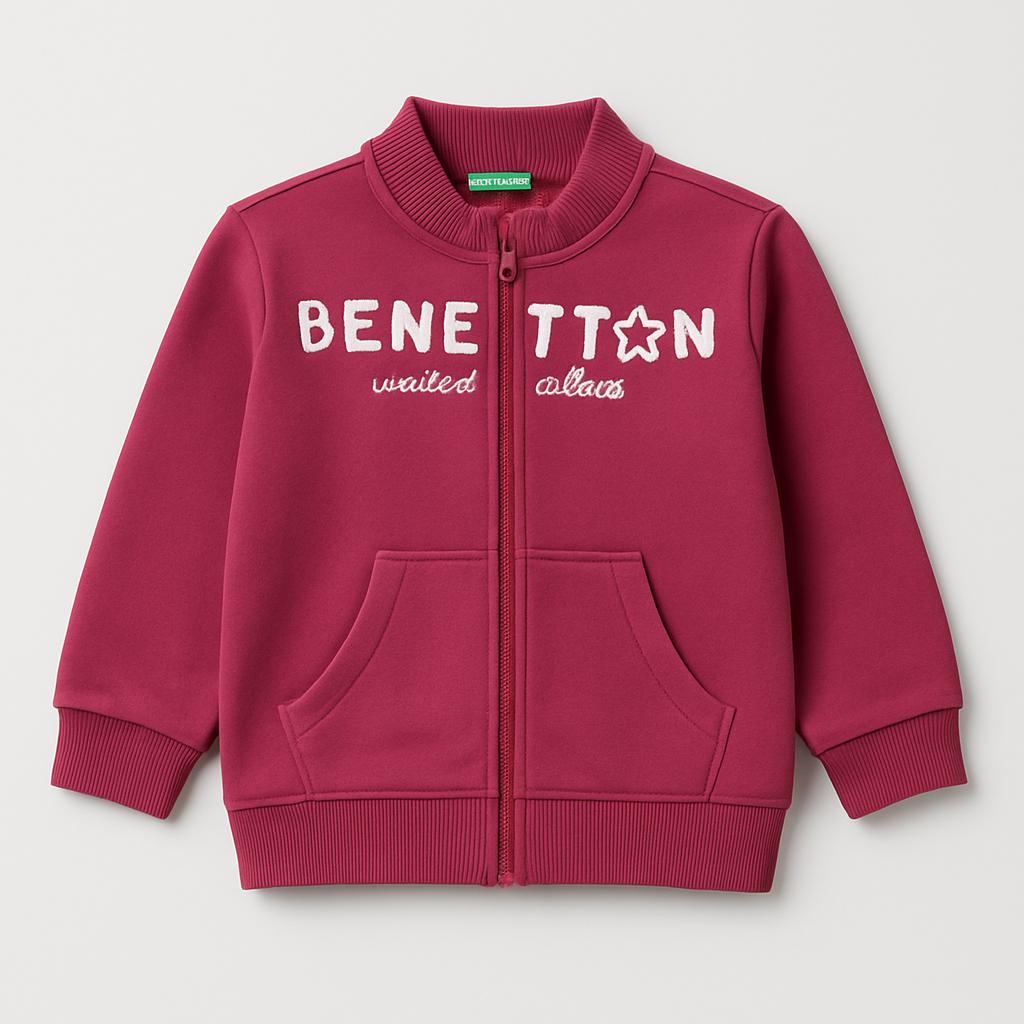 Questa giacca di Benetton è un'accogliente coccola per le giornate fresche dei più piccoli! Di un vivace colore bordeaux, è realizzata in morbido cotone e presenta una pratica zip frontale. Le tasche laterali offrono un tocco funzionale, perfette per riporre piccole treasures. Con il logo “Benetton united colors” in lettere bianche, aggiunge un tocco di stile giocoso. Nonostante sia un capo usato, è in ottime condizioni e pronta a scaldare i cuori dei vostri bambini. Un must per avventure all'aria aperta o semplicemente per un look trendy e comodo!
