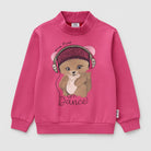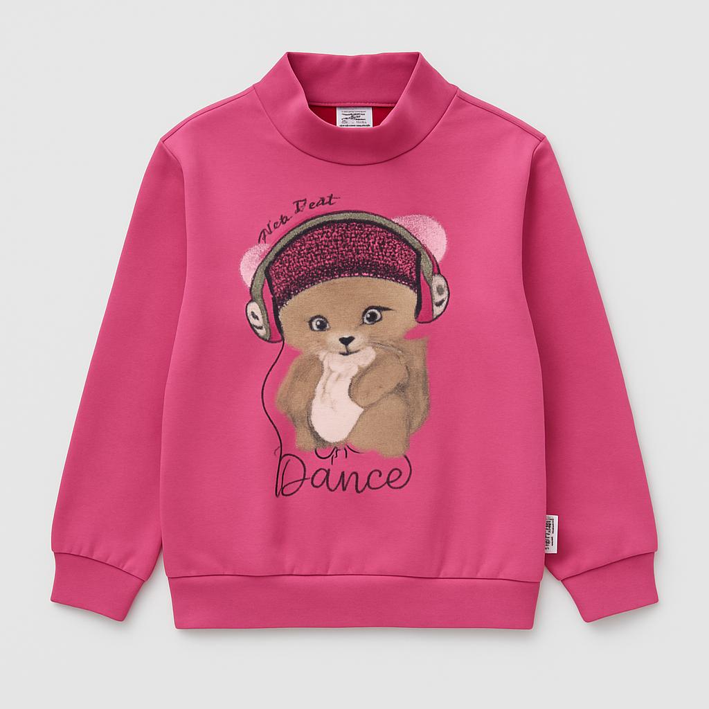 Questa fantastica felpa rosa è perfetta per le piccole amanti della musica e della danza! Con un design adorabile che presenta un orsacchiotto con cuffie e glitter che brillano, porterà un sorriso sul viso di ogni bimba. Il collo alto offre comfort e calore nelle fresche giornate autunnali, mentre il morbido tessuto in cotone garantisce massima comodità e libertà di movimento. Nonostante sia un capo usato, si trova in ottime condizioni, pronta per essere indossata da una piccola star della danza! Un'aggiunta divertente e trendy al guardaroba di ogni giovane fashionista!
