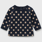 Questo adorabile pullover a maniche lunghe è perfetto per le piccole fashioniste! Realizzato in morbido tessuto, il classico fondo blu scuro è ravvivato da giocose pois beige che aggiungono un tocco di allegria e stile. Il design a raglan assicura una vestibilità comoda e una totale libertà di movimento per giocare e divertirsi. Anche se è un capo usato, si presenta in ottime condizioni, pronto per essere indossato in qualsiasi occasione. Un must-have nel guardaroba delle bambine che amano colori e comfort!
