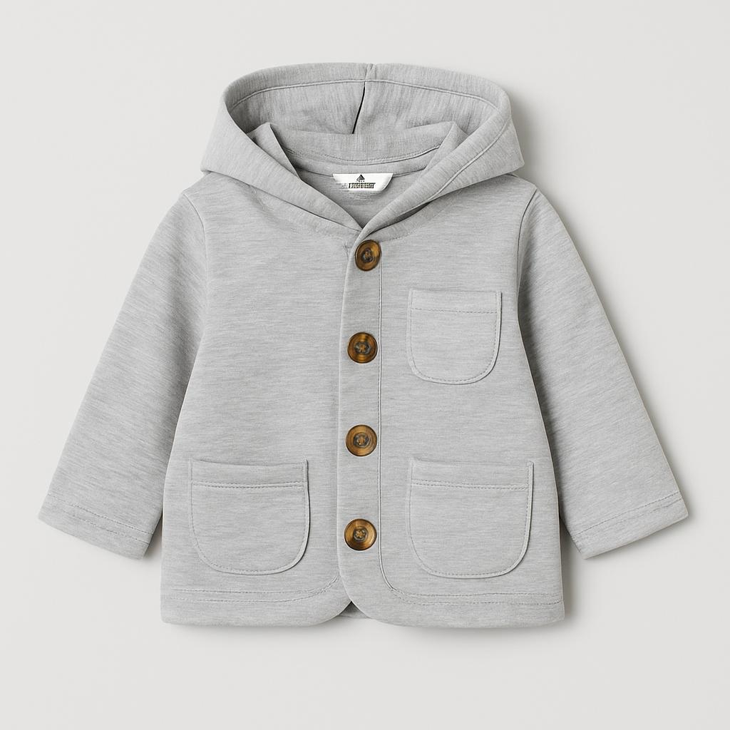 Questo adorabile giubbotto grigio mélange è perfetto per le fresche giornate primaverili! Con un pratico cappuccio e un taglio morbido, offre calore e comfort. I dettagli delle bottoni in legno aggiungono un tocco rustico e chic, mentre le tasche sul davanti rendono questo capo ideale per piccoli esploratori. Nonostante sia usato, è in ottime condizioni, pronto per accompagnare il tuo bimbo in tutte le sue avventure! Un must-have nel guardaroba di ogni piccola anima vivace!