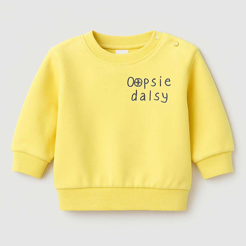 Questo adorabile pullover giallo "Oopsie Daisy" è perfetto per le piccole sognatrici! Realizzato in morbido cotone, offre comfort e calore durante le fresche giornate. La scritta stilizzata sulla parte anteriore aggiunge un tocco giocoso e originale. Con un colletto arrotondato e maniche a sbuffo, questo capo è ideale per outfit casual ed eleganti. Nonostante sia usato, è in ottime condizioni e pronto per accompagnare tante nuove avventure! Un must-have per le bambine che amano brillare!