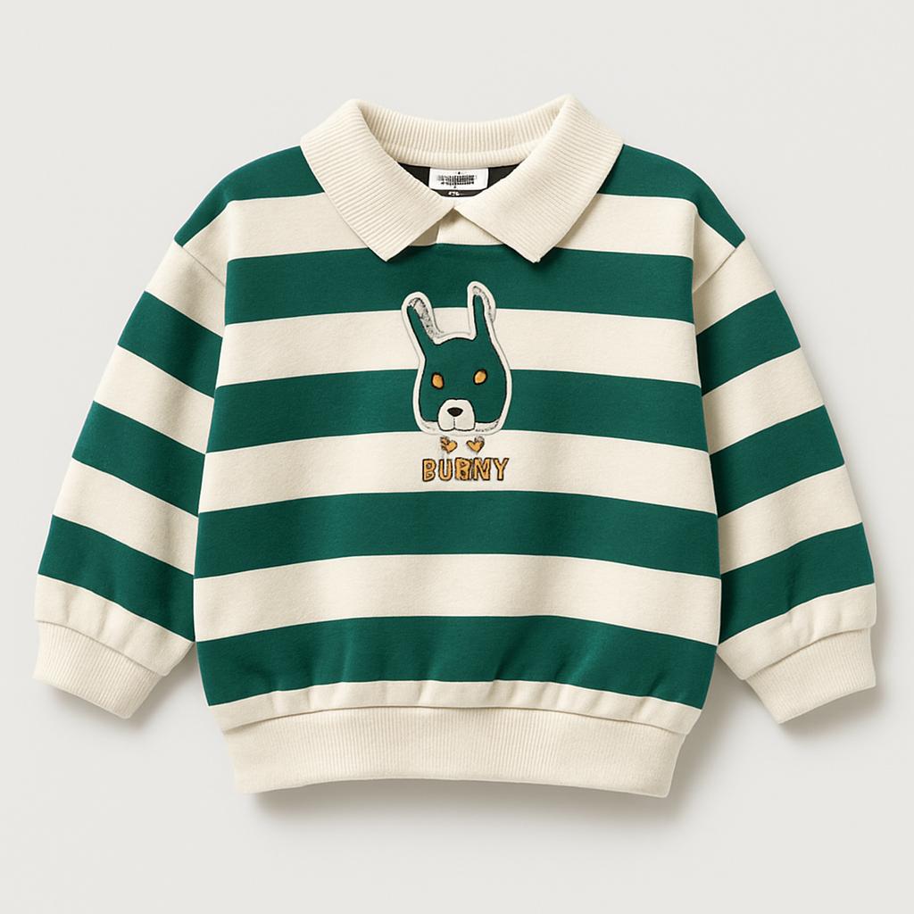 Scopri questo adorabile pullover a righe verdi e bianche, perfetto per le piccole avventure! Il colletto in costina dona un tocco elegante e retrò, mentre il simpatico ricamo di un coniglietto aggiunge un pizzico di dolcezza. Le maniche ampie e la vestibilità comoda garantiscono libertà di movimento per ogni gioco. Nonostante sia un capo usato, è in ottime condizioni ed è pronto per essere indossato. Un must-have per ogni guardaroba infantile, ideale per un look trendy e confortevole!