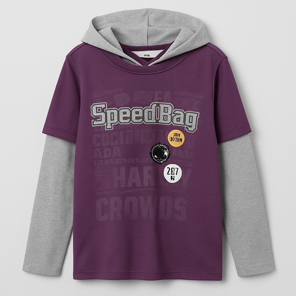 Scopri questa originale maglietta a maniche lunghe per bambini, perfetta per chi ama il comfort con un tocco di stile! Realizzata in morbido cotone, presenta un vivace colore viola con maniche grigie che creano un piacevole contrasto. La scritta "SpeedBag" sul davanti è accompagnata da divertenti patch che rendono il look ancora più accattivante e giovanile. È ideale per le giornate di gioco o per un look casual e alla moda. Anche se è un capo usato, si presenta in ottime condizioni, pronto per essere indossato da un piccolo avventuriero! Un aggettivo? Divertente!