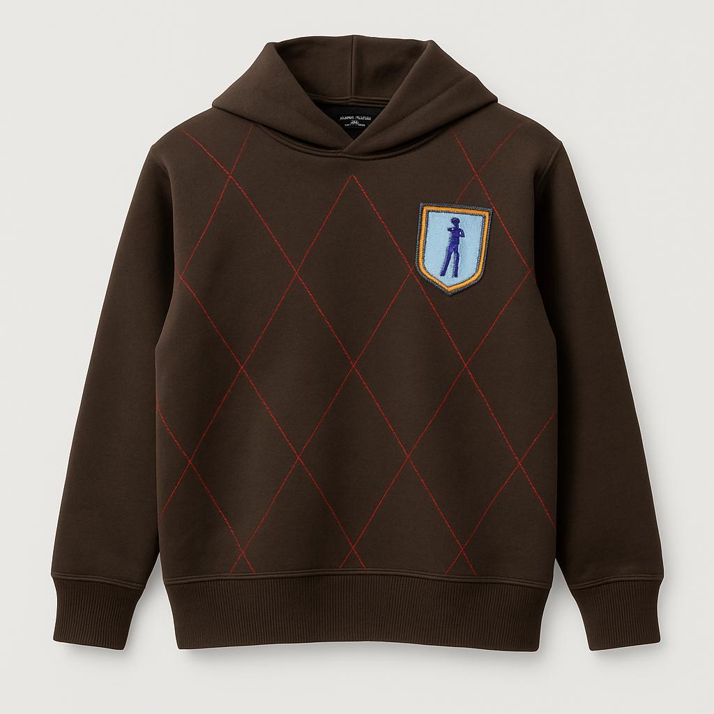Questa comoda felpa con cappuccio di colore marrone è il capo perfetto per le giornate fresche! Il design a rombi in rilievo, arricchito da un delizioso patch sul petto, la rende ancor più originale e stilosa. Realizzata in un tessuto morbido e caldo, questa felpa offre comfort e praticità, ideale per ogni occasione, dallo sport al relax. Nonostante sia usata, si presenta in ottime condizioni, pronta a diventare un pezzo amato nel guardaroba del tuo piccolo! Perfetta per i giovani esploratori che cercano stile e comfort!