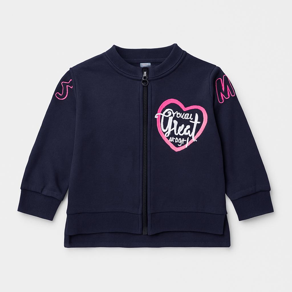 Questa adorabile giacca in jersey di colore blu navy è perfetta per le giornate fresche! Con una comoda zip, è facile da indossare e togliere. Le maniche lunghe, ornati da simpatiche scritte colorate, aggiungono un tocco vivace e giocoso. La scritta "Such a great day" sul fronte cattura l'attenzione, rendendo questo capo ideale per le piccole che amano esprimere la loro personalità. Nonostante sia usata, è in ottime condizioni e pronta a diventare la compagna ideale per avventure all’aperto o semplici momenti di relax. Un must-have per ogni armadio infantile!