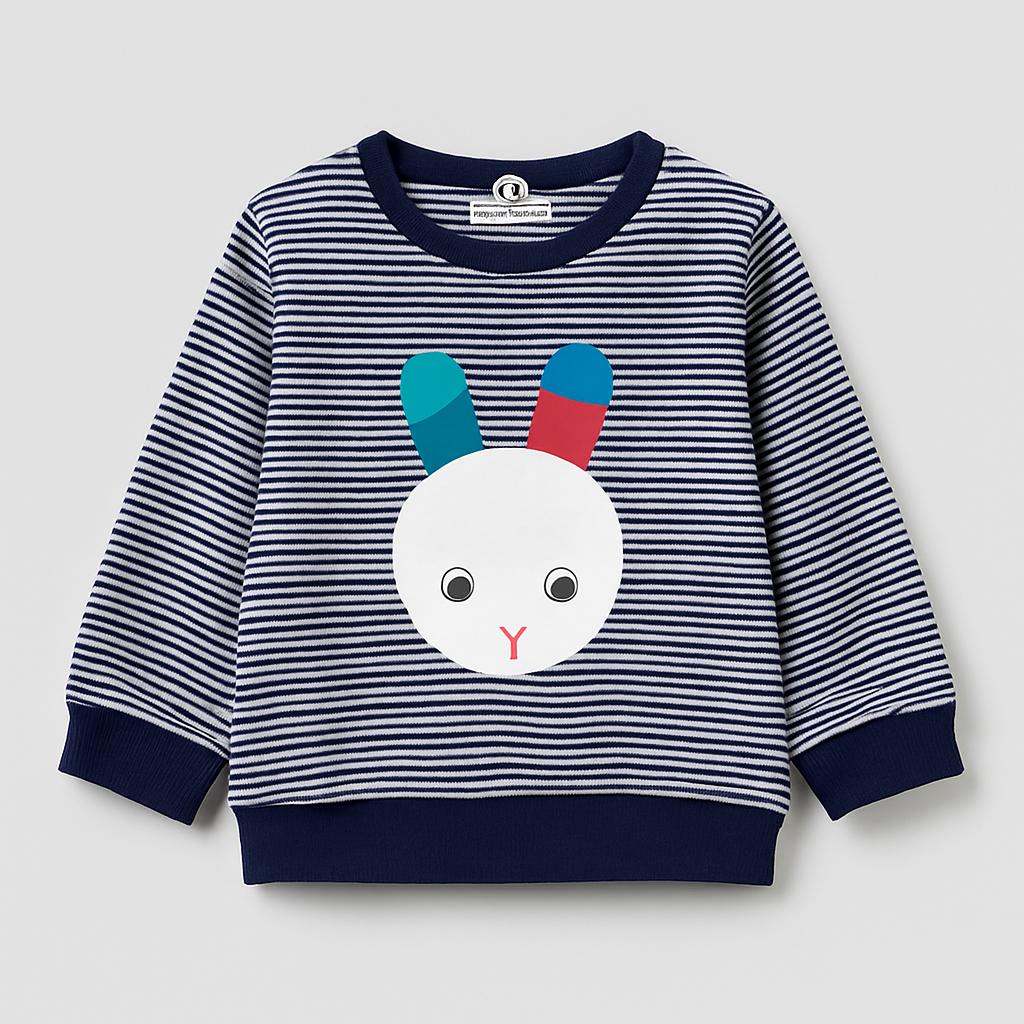 Questo dolce pullover a righe è perfetto per il guardaroba del tuo piccolo! Realizzato in morbido cotone, presenta un adorabile coniglietto ricamato sul davanti, con orecchie colorate che aggiungono un tocco divertente. Il design a righe bianche e blu scuro lo rende versatile e facilmente abbinabile a jeans o pantaloni. Le maniche lunghe e il taglio ampio garantiscono comfort e libertà di movimento durante le avventure quotidiane. Nonostante sia un capo usato, è in ottime condizioni e pronto per essere indossato da un piccolo amante degli animali! Un must-have per i bambini che adorano giocare con stile!
