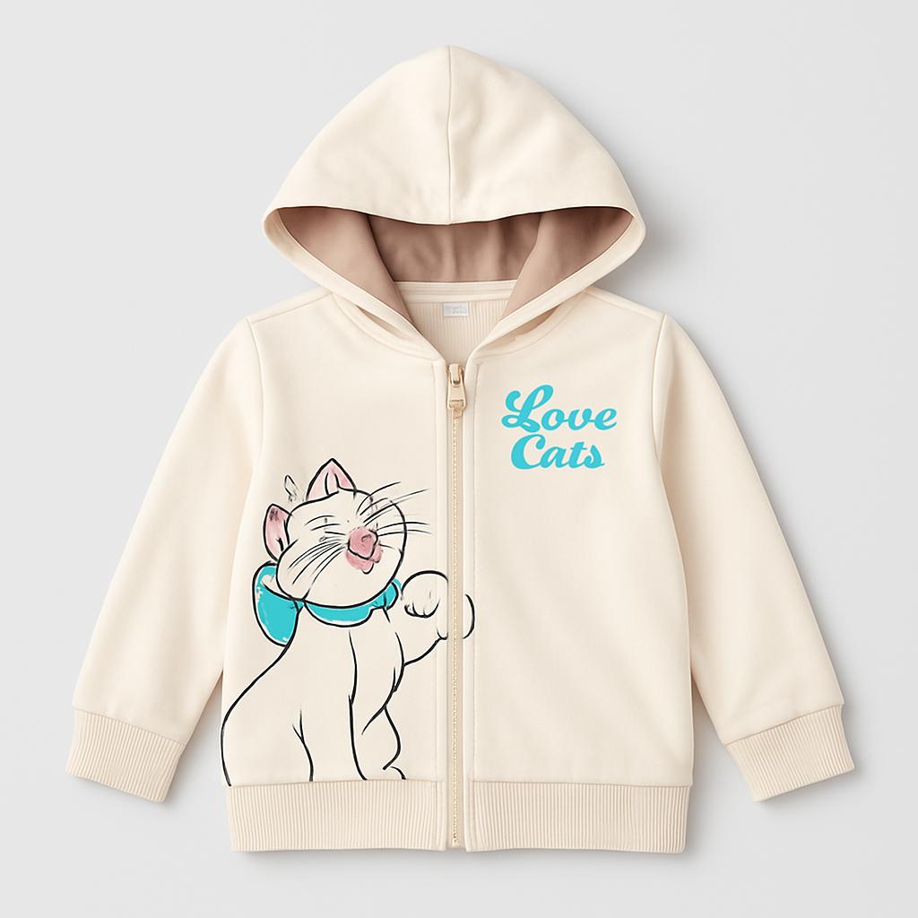 Questo adorabile felpa con cappuccio è perfetta per le piccole amanti degli animali! Realizzata in morbido tessuto beige, presenta una dolce stampa di un gatto simpatico accompagnato dalla scritta “Love Cats” in un vivace colore azzurro. La chiusura con zip e il cappuccio la rendono pratica e comoda, ideale per le fresche giornate primaverili o autunnali. Anche se si tratta di un capo usato, è in ottime condizioni, pronto a riscaldare il cuore e il guardaroba della tua bimba! Un must-have per ogni piccola fan dei felini!