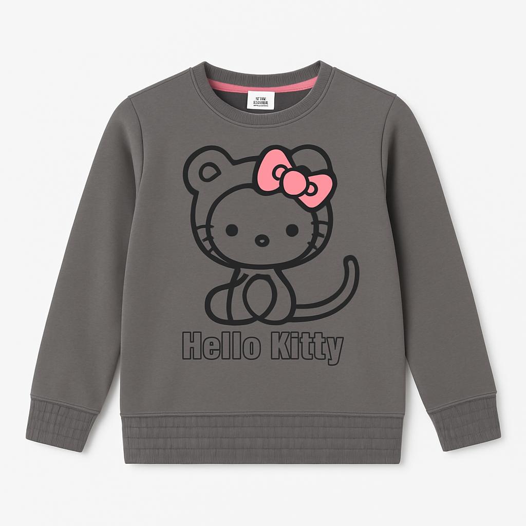 Questa dolcissima felpa di Hello Kitty è perfetta per le piccole fan del celebre gattino! Realizzata in un morbido tessuto grigio, presenta una simpatica stampa della mascotte con un adorabile fiocco rosa. Le maniche lunghe e la scollatura arrotondata la rendono ideale per le giornate fresche, mentre il taglio comodo garantisce libertà di movimento durante il gioco. Nonostante sia un capo usato, si trova in ottime condizioni e pronta a far brillare il guardaroba della tua bimba. Un must-have per un look giocoso e trendy!
