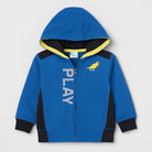 Questo adorabile hoodie blu è perfetto per i piccoli amanti dei dinosauri! Realizzato in morbido materiale, offre comfort e calore durante le giornate più fresche. La zip frontale e il cappuccio assicurano praticità e stile, mentre il contrasto nero ai lati aggiunge un tocco moderno. Il divertente ricamo di un dinosauro e la scritta “PLAY” in argento iridescente renderanno felice ogni bimbo. Anche se usato, si presenta in buone condizioni, pronto per nuove avventure! Un capo versatile per un look sportivo e giocoso!