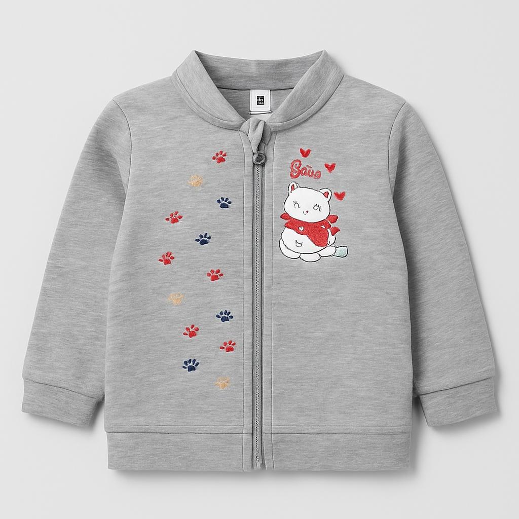 Questa adorabile felpa grigia è perfetta per le giornate fresche! Realizzata in morbido tessuto, offre calore e comfort. Sul davanti, un tenero orsetto con una sciarpa colorata e un messaggio giocoso "Follow me" aggiungono un tocco di dolcezza. Le piccole zampette colorate lungo il lato la rendono ancora più divertente! Con una comoda chiusura a zip e maniche lunghe, è ideale per avventure all'aria aperta o momenti di gioco in casa. Nonostante sia usata, si presenta in ottime condizioni e sarà un'aggiunta amata al guardaroba della tua piccola!