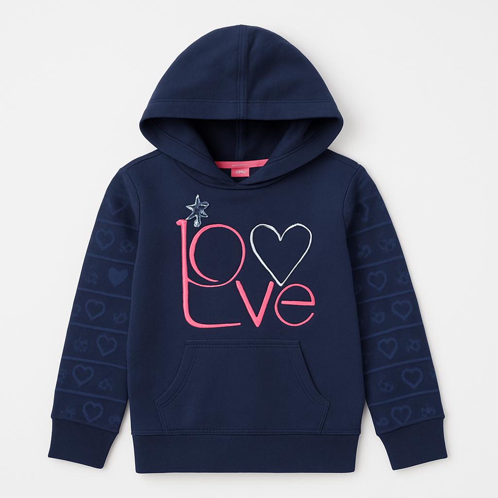 Questa dolcissima felpa con cappuccio è perfetta per le piccole amanti del comfort e dello stile! Realizzata in morbido cotone, presenta un elegante colore blu scuro impreziosito da un adorabile disegno "LOVE" in rosa, accompagnato da stelle e cuori sul maniche. La sua vestibilità comoda e il cappuccio la rendono ideale per le giornate più fresche, giochi all'aperto o momenti di relax a casa. Anche se è un capo usato, è in ottime condizioni e pronto per essere indossata da una piccola fashionista! Un must-have per ogni guardaroba!