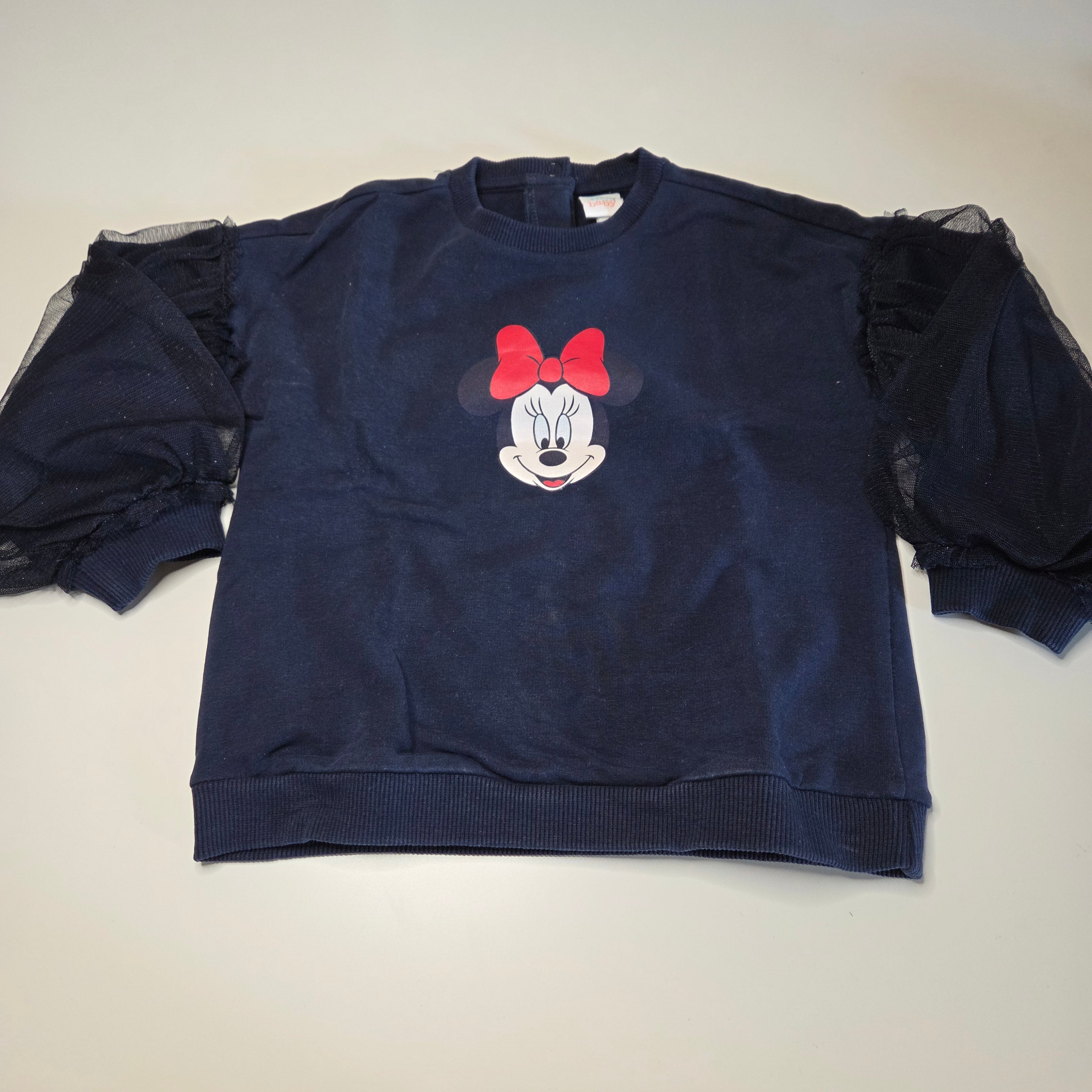 Questo adorabile maglione navy con il festoso design di Minnie Mouse porterà un tocco di magia nel guardaroba della tua piccola! Con un bellissimo volto di Minnie impreziosito da un fiocco rosso, il maglione è completato da maniche a palloncino realizzate in morbido tulle nero che aggiungono un tocco chic e giocoso. La vestibilità comoda lo rende perfetto per le avventure quotidiane, sia che si tratti di una passeggiata nel parco che di un pomeriggio di gioco al coperto. Nonostante sia un articolo usato, si presenta in ottime condizioni, pronta per essere indossata da una piccola fan di Minnie! Un capo imprescindibile per le piccole amanti dello stile!
