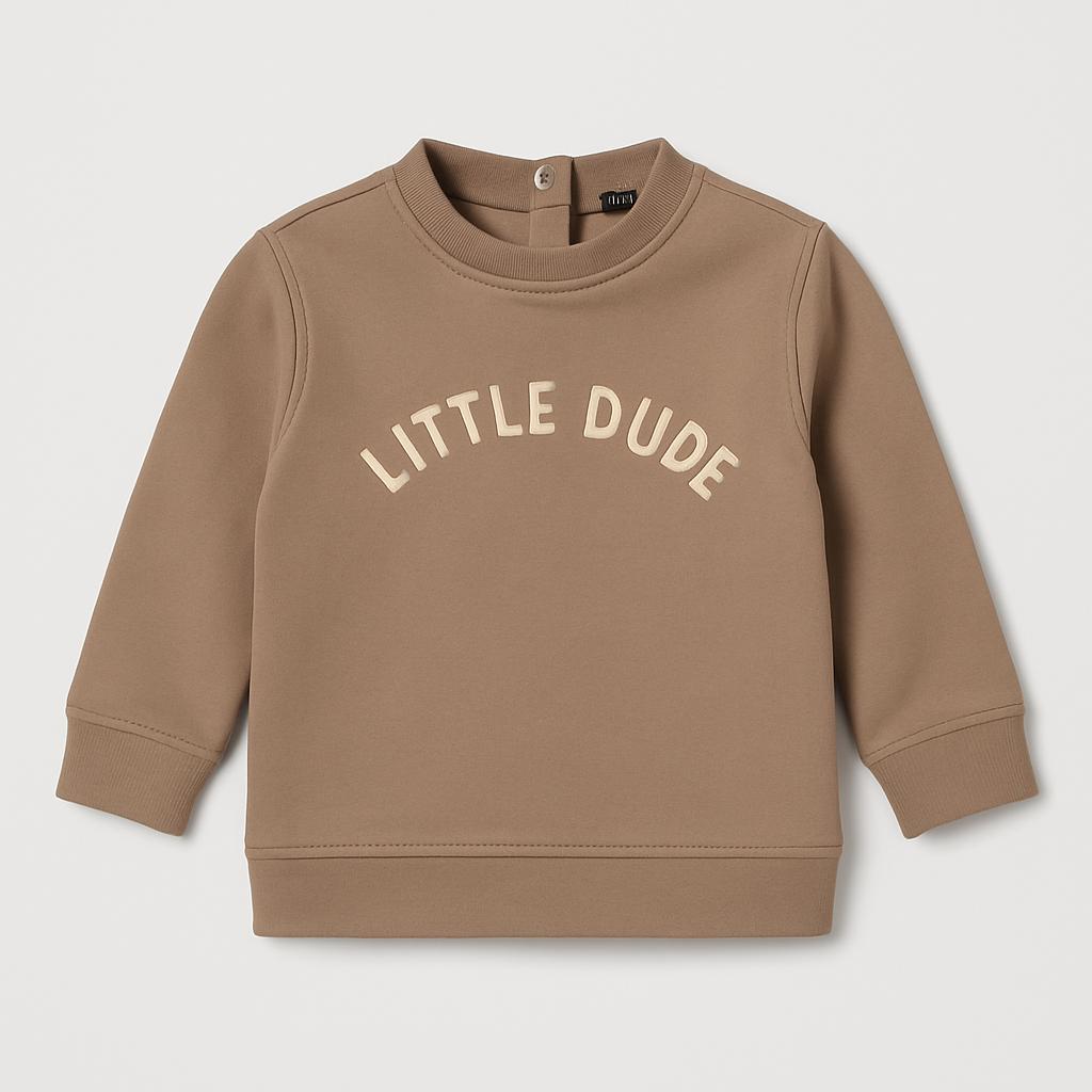 Questo soffice maglione di marca Benetton è perfetto per il piccolo esploratore che vuole affrontare le avventure quotidiane con stile! Realizzato in un caldo cotone beige, presenta un delizioso messaggio “LITTLE DUDE” sul davanti, che aggiunge un tocco di personalità.